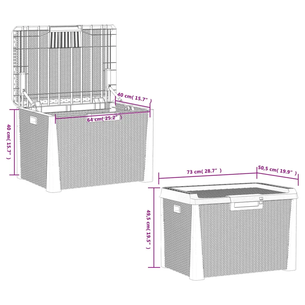 This garden storage box with a rattan look is ideal for storing your cushions, pillows, blankets, toys, and other items in the garden or on the patio. Durable material: Polypropylene (PP) is a popular plastic that is also one of the most used materials in outdoor furniture. It's lightweight, tough, and resistant to impact. Also, this storage box is weather-resistant and UV resistant, and easy to maintain. Ample storage space: This outdoor storage box has 125 L of storage space for cushions, pillows, blankets, garden tools and more to keep your garden space tidy! Multi-purpose use: This storage chest is not only used as a garden storage container, but also has a load capacity of 180 kg, which can be used as a chair, ideal for the garden, backyard, front porch and more! Gas-lift design: The gas-lift design helps you easily open the top fully and close it slowly, making it easy to use without crushing your fingers. Lockable: This outdoor cushion storage can be locked for added safety (lock not included). Good to know:To make sure your outdoor furniture stays beautiful, we recommend protecting it with a waterproof cover.