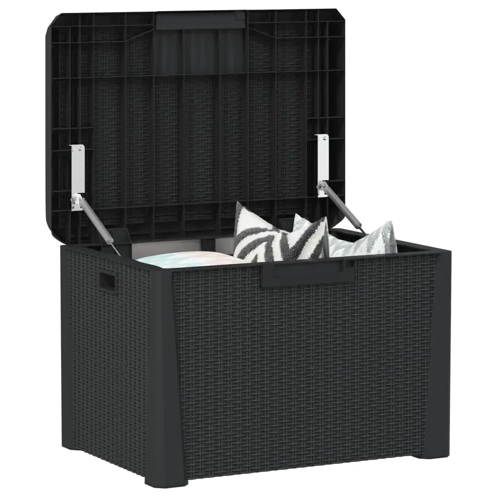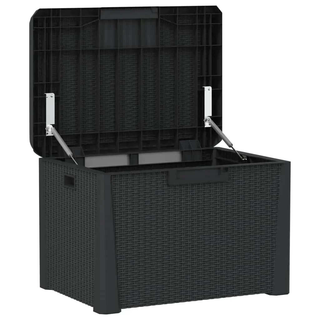 This garden storage box with a rattan look is ideal for storing your cushions, pillows, blankets, toys, and other items in the garden or on the patio. Durable material: Polypropylene (PP) is a popular plastic that is also one of the most used materials in outdoor furniture. It's lightweight, tough, and resistant to impact. Also, this storage box is weather-resistant and UV resistant, and easy to maintain. Ample storage space: This outdoor storage box has 125 L of storage space for cushions, pillows, blankets, garden tools and more to keep your garden space tidy! Multi-purpose use: This storage chest is not only used as a garden storage container, but also has a comfortable cushion with a load capacity of 180 kg, which can be used as a chair, ideal for the garden, backyard, front porch and more! Gas-lift design: The gas-lift design helps you easily open the top fully and close it slowly, making it easy to use without crushing your fingers. Lockable: This outdoor cushion storage can be locked for added safety (lock not included). Good to know:To make sure your outdoor furniture stays beautiful, we recommend protecting it with a waterproof cover.