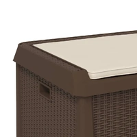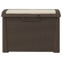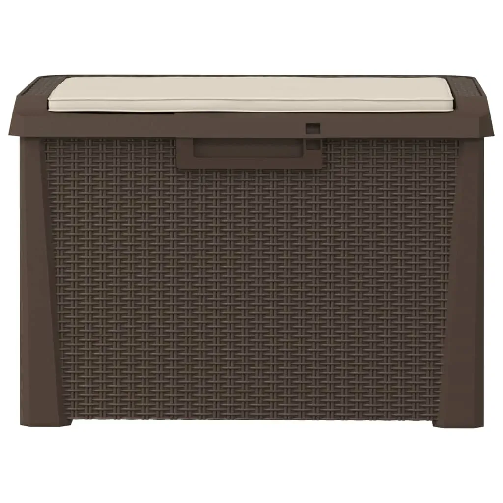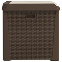 This garden storage box with a rattan look is ideal for storing your cushions, pillows, blankets, toys, and other items in the garden or on the patio. Durable material: Polypropylene (PP) is a popular plastic that is also one of the most used materials in outdoor furniture. It's lightweight, tough, and resistant to impact. Also, this storage box is weather-resistant and UV resistant, and easy to maintain. Ample storage space: This outdoor storage box has 125 L of storage space for cushions, pillows, blankets, garden tools and more to keep your garden space tidy! Multi-purpose use: This storage chest is not only used as a garden storage container, but also has a comfortable cushion with a load capacity of 180 kg, which can be used as a chair, ideal for the garden, backyard, front porch and more! Gas-lift design: The gas-lift design helps you easily open the top fully and close it slowly, making it easy to use without crushing your fingers. Lockable: This outdoor cushion storage can be locked for added safety (lock not included). Good to know:To make sure your outdoor furniture stays beautiful, we recommend protecting it with a waterproof cover.