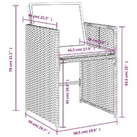 Relax and enjoy the outdoors in these comfortable garden chairs! Durable material: PE rattan, also known as poly rattan, is a strong, low-maintenance synthetic material that looks like natural rattan. It's lightweight, easy to clean, and commonly used for outdoor furniture due to its durability and weather-resistant properties.Comfortable seat experience: This outdoor furniture, complete with thickly padded cushions, offers a comfortable seating experience.Flap backrest: These chairs have a flap backrest that can be folded down for compact storage.Removable and washable cover: These cushions feature removable covers for easy washing and maintenance. The chair cushion covers have a flap at the back for easy attachment to the chairs.Robust and stable frame: The powder-coated steel frame ensures the garden furniture is strong and stable for daily outdoor use. Good to know:To make sure your outdoor furniture stays beautiful, we recommend protecting it with a waterproof cover.