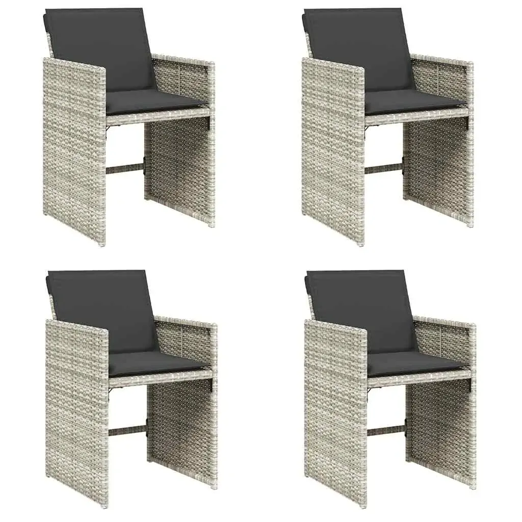 Relax and enjoy the outdoors in these comfortable garden chairs! Durable material: PE rattan, also known as poly rattan, is a strong, low-maintenance synthetic material that looks like natural rattan. It's lightweight, easy to clean, and commonly used for outdoor furniture due to its durability and weather-resistant properties.Comfortable seat experience: This outdoor furniture, complete with thickly padded cushions, offers a comfortable seating experience.Flap backrest: These chairs have a flap backrest that can be folded down for compact storage.Removable and washable cover: These cushions feature removable covers for easy washing and maintenance. The chair cushion covers have a flap at the back for easy attachment to the chairs.Robust and stable frame: The powder-coated steel frame ensures the garden furniture is strong and stable for daily outdoor use. Good to know:To make sure your outdoor furniture stays beautiful, we recommend protecting it with a waterproof cover.