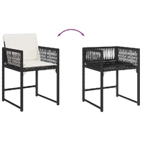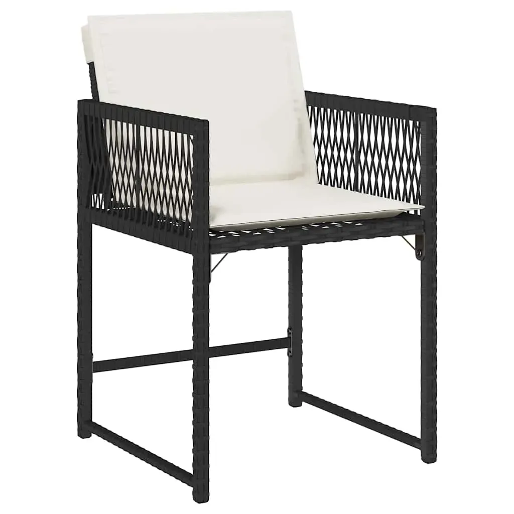 Relax and enjoy the outdoors in these comfortable garden chairs! Durable material: PE rattan, also known as poly rattan, is a strong, low-maintenance synthetic material that looks like natural rattan. It's lightweight, easy to clean, and commonly used for outdoor furniture due to its durability and weather-resistant properties.Comfortable seat experience: This outdoor furniture, complete with thickly padded cushions, offers a comfortable seating experience.Flap backrest: These chairs have a flap backrest that can be folded down for compact storage.Removable and washable cover: These cushions feature removable covers for easy washing and maintenance. The chair cushion covers have a flap at the back for easy attachment to the chairs.Robust and stable frame: The powder-coated steel frame ensures the garden furniture is strong and stable for daily outdoor use. Good to know:To make sure your outdoor furniture stays beautiful, we recommend protecting it with a waterproof cover.