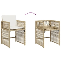 Relax and enjoy the outdoors in these comfortable garden chairs! Durable material: PE rattan, also known as poly rattan, is a strong, low-maintenance synthetic material that looks like natural rattan. It's lightweight, easy to clean, and commonly used for outdoor furniture due to its durability and weather-resistant properties.Comfortable seat experience: This outdoor furniture, complete with thickly padded cushions, offers a comfortable seating experience.Flap backrest: These chairs have a flap backrest that can be folded down for compact storage.Removable and washable cover: These cushions feature removable covers for easy washing and maintenance. The chair cushion covers have a flap at the back for easy attachment to the chairs.Robust and stable frame: The powder-coated steel frame ensures the garden furniture is strong and stable for daily outdoor use. Good to know:To make sure your outdoor furniture stays beautiful, we recommend protecting it with a waterproof cover.