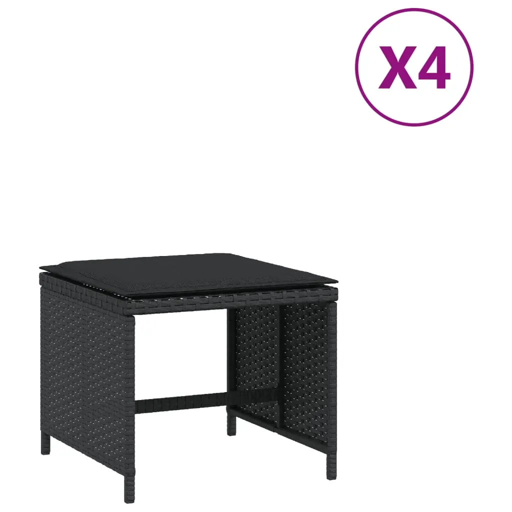 Relax and enjoy the outdoors in these comfortable garden stools! Durable material: PE rattan, also known as poly rattan, is a strong, low-maintenance synthetic material that looks like natural rattan. It's lightweight, easy to clean, and commonly used for outdoor furniture due to its durability and weather-resistant properties.Comfortable seat experience: This outdoor furniture, complete with thickly padded cushions, offers a comfortable seating experience.Removable and washable cover: These seat cushions feature removable covers for easy washing and maintenance. Robust and stable frame: The powder-coated steel frame ensures the garden furniture is strong and stable for daily outdoor use. Good to know:To make sure your outdoor furniture stays beautiful, we recommend protecting it with a waterproof cover.