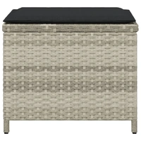 Relax and enjoy the outdoors on these comfortable garden stools! Durable material: PE rattan, also known as poly rattan, is a strong, low-maintenance synthetic material that looks like natural rattan. It's lightweight, easy to clean, and commonly used for outdoor furniture due to its durability and weather-resistant properties.Comfortable seat experience: This outdoor furniture, complete with thickly padded cushions, offers a comfortable seating experience.Removable and washable cover: These seat cushions feature removable covers for easy washing and maintenance. Robust and stable frame: The powder-coated steel frame ensures the garden furniture is strong and stable for daily outdoor use. Good to know:To make sure your outdoor furniture stays beautiful, we recommend protecting it with a waterproof cover.