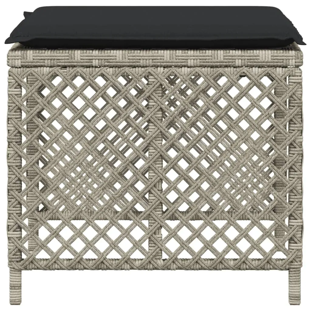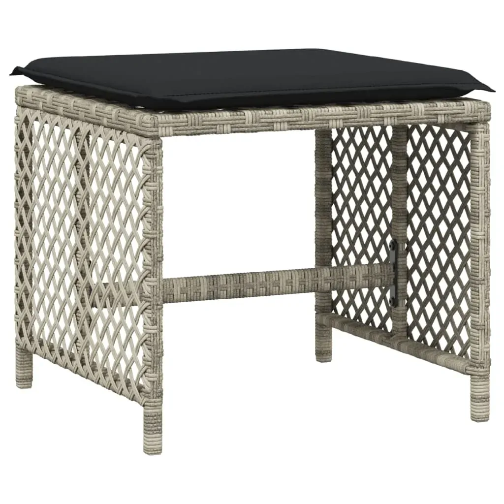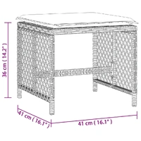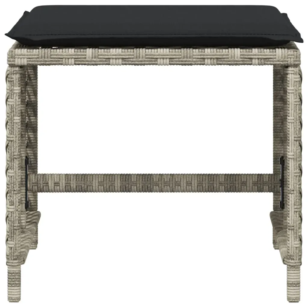 Relax and enjoy the outdoors on these comfortable garden stools! Durable material: PE rattan, also known as poly rattan, is a strong, low-maintenance synthetic material that looks like natural rattan. It's lightweight, easy to clean, and commonly used for outdoor furniture due to its durability and weather-resistant properties.Comfortable seat experience: This outdoor furniture, complete with thickly padded cushions, offers a comfortable seating experience.Removable and washable cover: These seat cushions feature removable covers for easy washing and maintenance. Robust and stable frame: The powder-coated steel frame ensures the garden furniture is strong and stable for daily outdoor use. Good to know:To make sure your outdoor furniture stays beautiful, we recommend protecting it with a waterproof cover.