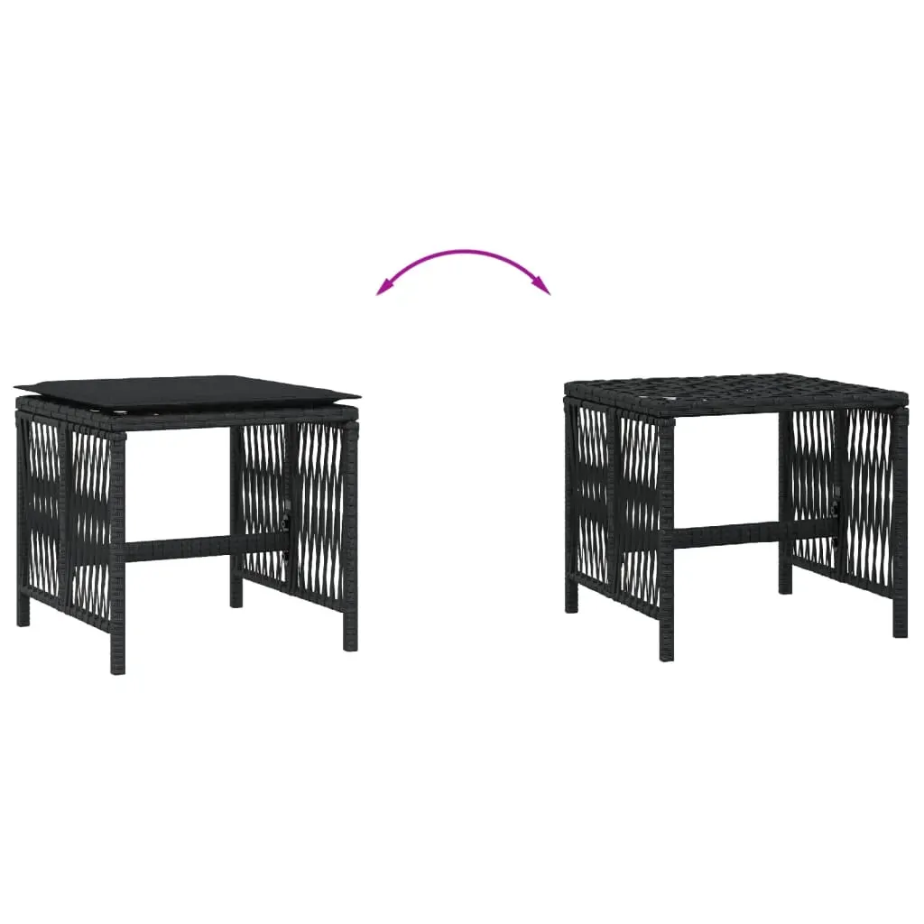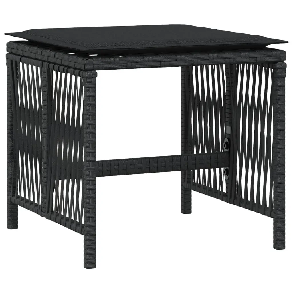 Relax and enjoy the outdoors in these comfortable garden stools! Durable material: PE rattan, also known as poly rattan, is a strong, low-maintenance synthetic material that looks like natural rattan. It's lightweight, easy to clean, and commonly used for outdoor furniture due to its durability and weather-resistant properties.Comfortable seat experience: This outdoor furniture, complete with thickly padded cushions, offers a comfortable seating experience.Removable and washable cover: These seat cushions feature removable covers for easy washing and maintenance. Robust and stable frame: The powder-coated steel frame ensures the garden furniture is strong and stable for daily outdoor use. Good to know:To make sure your outdoor furniture stays beautiful, we recommend protecting it with a waterproof cover.