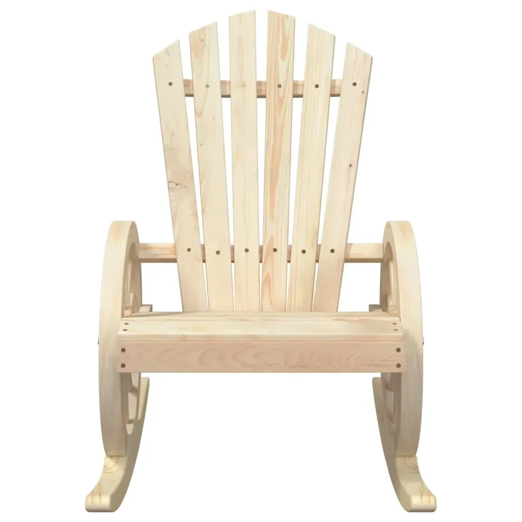This rocking Adirondack chair is perfect for those who want to enjoy the outdoors in style and comfort. Solid fir wood: Solid fir wood is a beautiful and durable material that maintains its integrity even when exposed to moisture. It does not dry out or warp, making it a reliable choice.Comfortable seating: The garden lounge chair features an ergonomic seat and angled backrest for optimal seating comfort. Additionally, the wagon-wheel shaped armrests provide comfortable space to rest your arms.Rocking design: Relax by sitting comfortably on this Adirondack rocking chair while enjoying a calming, gentle rocking motion.Wide applications: The outdoor chair is a perfect seating solution in your gardens, backyards, lawns, decks, pool sides, balconies, and other outdoor living spaces. Good to know:To make sure your outdoor furniture stays beautiful, we recommend protecting it with a waterproof cover.