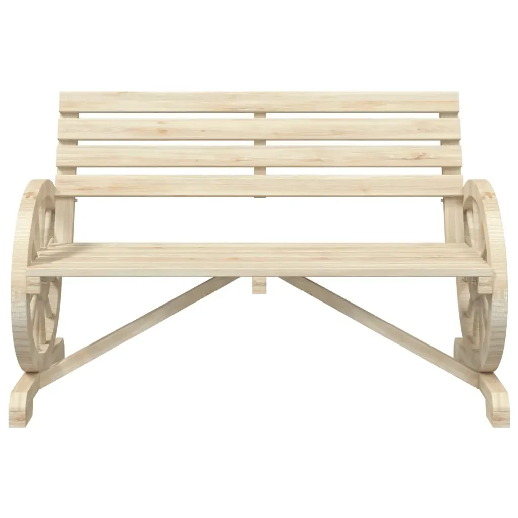 This wooden garden bench will make a great addition to your garden, patio, or terrace, allowing you to enjoy a cosy time with your family or friends. Solid fir wood: Solid fir wood is a beautiful and durable material that maintains its integrity even when exposed to moisture. It does not dry out or warp, making it a reliable choice.Comfortable seat experience: The backrest and armrests add extra seating comfort for the outdoor chair.Attractive design: The armrests of the outdoor bench feature a wagon wheel design that offers an eye-catching display from every angle. Good to know:To make sure your outdoor furniture stays beautiful, we recommend protecting it with a waterproof cover.