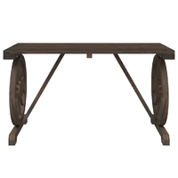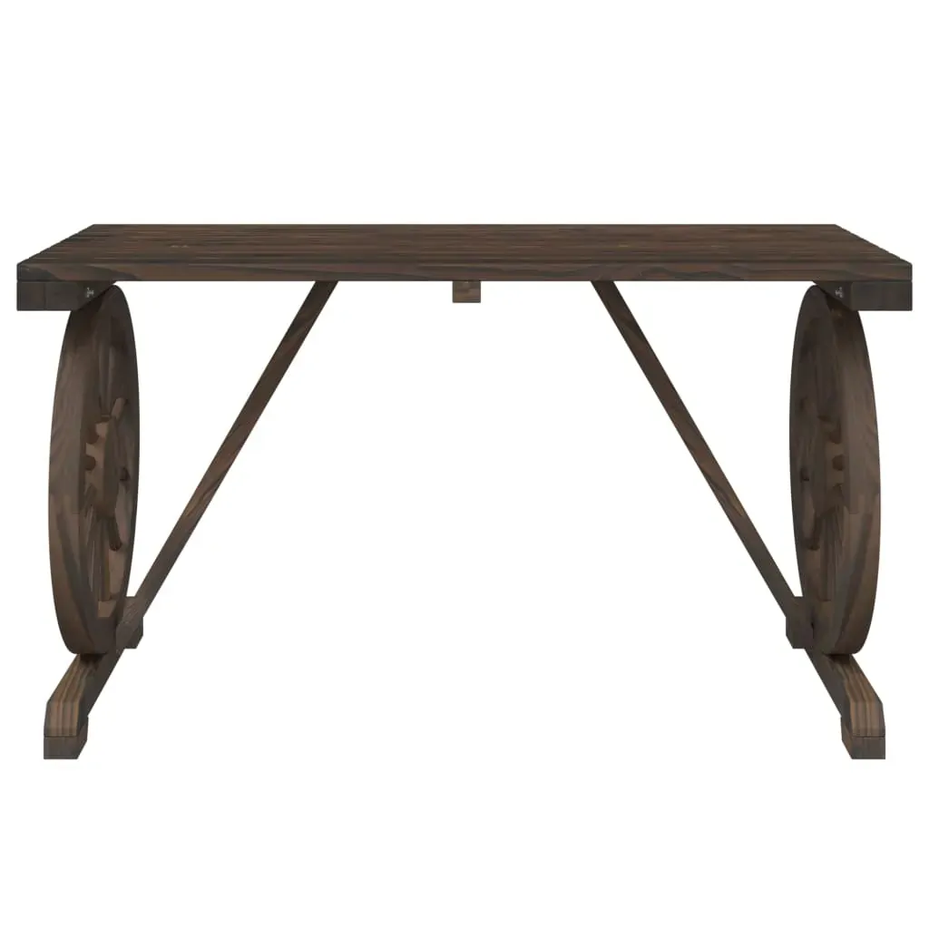 Enjoy a nice meal outdoors with your family and friends around this garden table! The wooden table will bring a touch of rustic charm to your patio, garden or terrace. Solid fir wood: Solid fir wood is a beautiful and durable material that maintains its integrity even when exposed to moisture. It does not dry out or warp, making it a reliable choice.Practical table: The garden table is perfect for placing your drinks, food and other decorative items.Attractive design: The outdoor table features a wagon wheel design that offers an eye-catching display from every angle. Good to know:To make sure your outdoor furniture stays beautiful, we recommend protecting it with a waterproof cover.