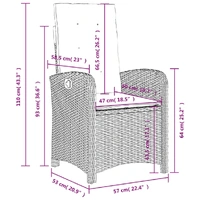 Relax and enjoy the outdoors in this comfortable reclining garden chair! Durable material: PE rattan, also known as poly rattan, is a strong, low-maintenance synthetic material that looks like natural rattan. It's lightweight, easy to clean, and commonly used for outdoor furniture due to its durability and weather-resistant properties.Adjustable backrest: This garden furniture has a handle on the right side. You can adjust the backrest to any position by pulling the handle. You can also quickly return the backrest to its original position with the handle.Comfortable seat experience: This outdoor furniture, complete with thickly padded cushions, offers a comfortable seating experience.Removable and washable cover: These seat cushions feature removable covers for easy washing and maintenance.Robust and stable frame: The powder-coated steel frame ensures the garden furniture is strong and stable for daily outdoor use. Good to know:To make sure your outdoor furniture stays beautiful, we recommend protecting it with a waterproof cover.