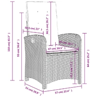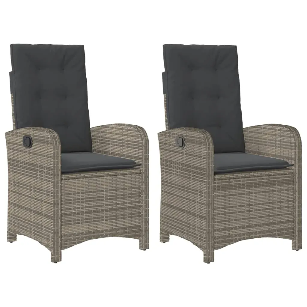 Relax and enjoy the outdoors in these comfortable reclining garden chairs! Durable material: PE rattan, also known as poly rattan, is a strong, low-maintenance synthetic material that looks like natural rattan. It's lightweight, easy to clean, and commonly used for outdoor furniture due to its durability and weather-resistant properties.Adjustable backrest: This garden furniture has a handle on the right side. You can adjust the backrest to any position by pulling the handle. You can also quickly return the backrest to its original position with the handle.Comfortable seat experience: This outdoor furniture, complete with thickly padded cushions, offers a comfortable seating experience.Removable and washable cover: These seat cushions feature removable covers for easy washing and maintenance.Robust and stable frame: The powder-coated steel frame ensures the garden furniture is strong and stable for daily outdoor use. Good to know:To make sure your outdoor furniture stays beautiful, we recommend protecting it with a waterproof cover.