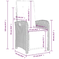 Relax and enjoy the outdoors in these comfortable reclining garden chairs! Durable material: PE rattan, also known as poly rattan, is a strong, low-maintenance synthetic material that looks like natural rattan. It's lightweight, easy to clean, and commonly used for outdoor furniture due to its durability and weather-resistant properties.Adjustable backrest and footrest: This garden seat has a handle. You can adjust the backrest and footrest to any position by pulling the handle, and quickly return them to their original positions. Comfortable seat experience: This outdoor furniture, complete with thickly padded cushions, offers a comfortable seating experience.Removable and washable cover: These seat cushions feature removable covers for easy washing and maintenance.Robust and stable frame: The powder-coated steel frame ensures the garden furniture is strong and stable for daily outdoor use. Good to know:To make sure your outdoor furniture stays beautiful, we recommend protecting it with a waterproof cover.