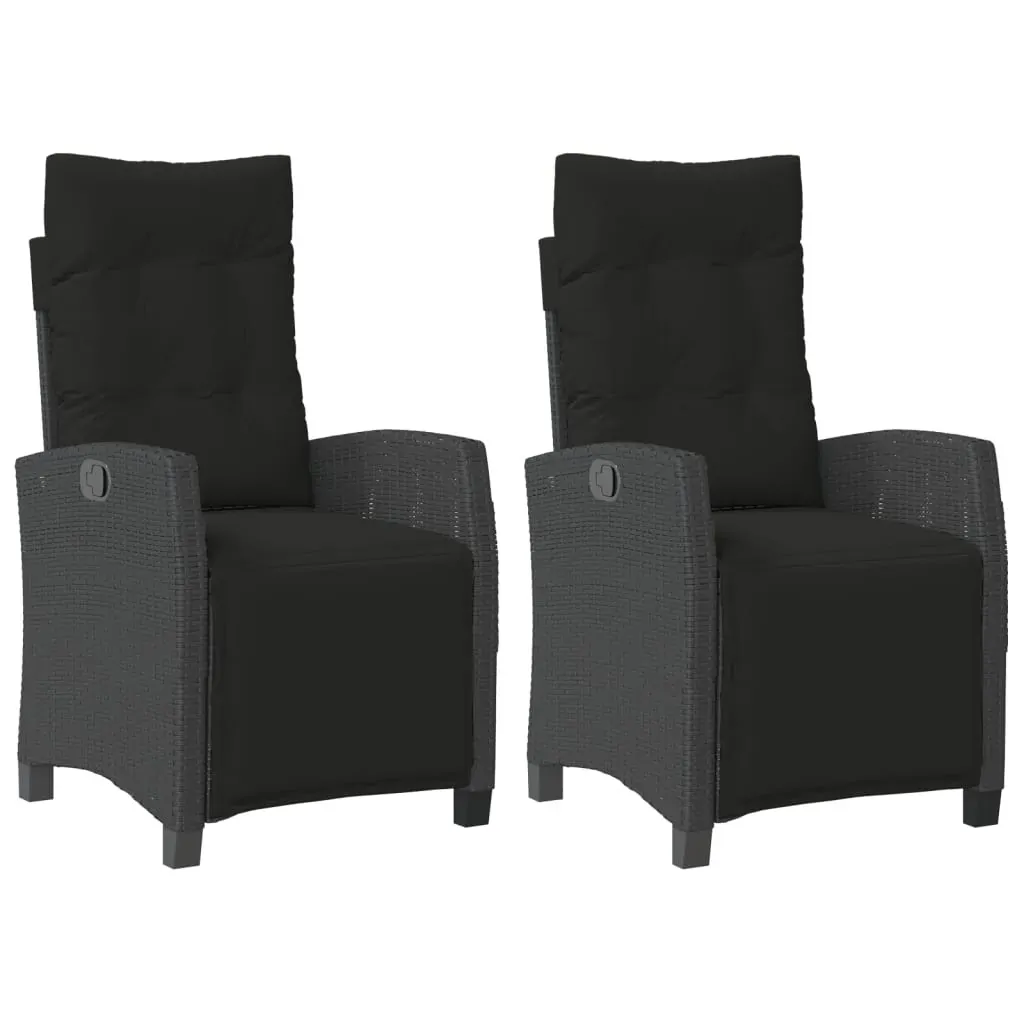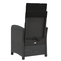 Relax and enjoy the outdoors in these comfortable reclining garden chairs! Durable material: PE rattan, also known as poly rattan, is a strong, low-maintenance synthetic material that looks like natural rattan. It's lightweight, easy to clean, and commonly used for outdoor furniture due to its durability and weather-resistant properties.Adjustable backrest and footrest: This garden seat has a handle. You can adjust the backrest and footrest to any position by pulling the handle, and quickly return them to their original positions. Comfortable seat experience: This outdoor furniture, complete with thickly padded cushions, offers a comfortable seating experience.Removable and washable cover: These seat cushions feature removable covers for easy washing and maintenance.Robust and stable frame: The powder-coated steel frame ensures the garden furniture is strong and stable for daily outdoor use. Good to know:To make sure your outdoor furniture stays beautiful, we recommend protecting it with a waterproof cover.