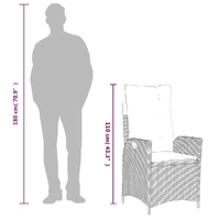 Relax and enjoy the outdoors in this comfortable reclining garden chair! Durable material: PE rattan, also known as poly rattan, is a strong, low-maintenance synthetic material that looks like natural rattan. It's lightweight, easy to clean, and commonly used for outdoor furniture due to its durability and weather-resistant properties.Adjustable backrest: This garden furniture has a handle on the right side. You can adjust the backrest to any position by pulling the handle. You can also quickly return the backrest to its original position with the handle.Comfortable seat experience: This outdoor furniture, complete with thickly padded cushions, offers a comfortable seating experience.Removable and washable cover: These seat cushions feature removable covers for easy washing and maintenance.Robust and stable frame: The powder-coated steel frame ensures the garden furniture is strong and stable for daily outdoor use. Good to know:To make sure your outdoor furniture stays beautiful, we recommend protecting it with a waterproof cover.