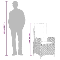 Relax and enjoy the outdoors in this comfortable reclining garden chair! Durable material: PE rattan, also known as poly rattan, is a strong, low-maintenance synthetic material that looks like natural rattan. It's lightweight, easy to clean, and commonly used for outdoor furniture due to its durability and weather-resistant properties.Adjustable backrest: This garden furniture has a handle on the right side. You can adjust the backrest to any position by pulling the handle. You can also quickly return the backrest to its original position with the handle.Comfortable seat experience: This outdoor furniture, complete with thickly padded cushions, offers a comfortable seating experience.Removable and washable cover: These seat cushions feature removable covers for easy washing and maintenance.Robust and stable frame: The powder-coated steel frame ensures the garden furniture is strong and stable for daily outdoor use. Good to know:To make sure your outdoor furniture stays beautiful, we recommend protecting it with a waterproof cover.