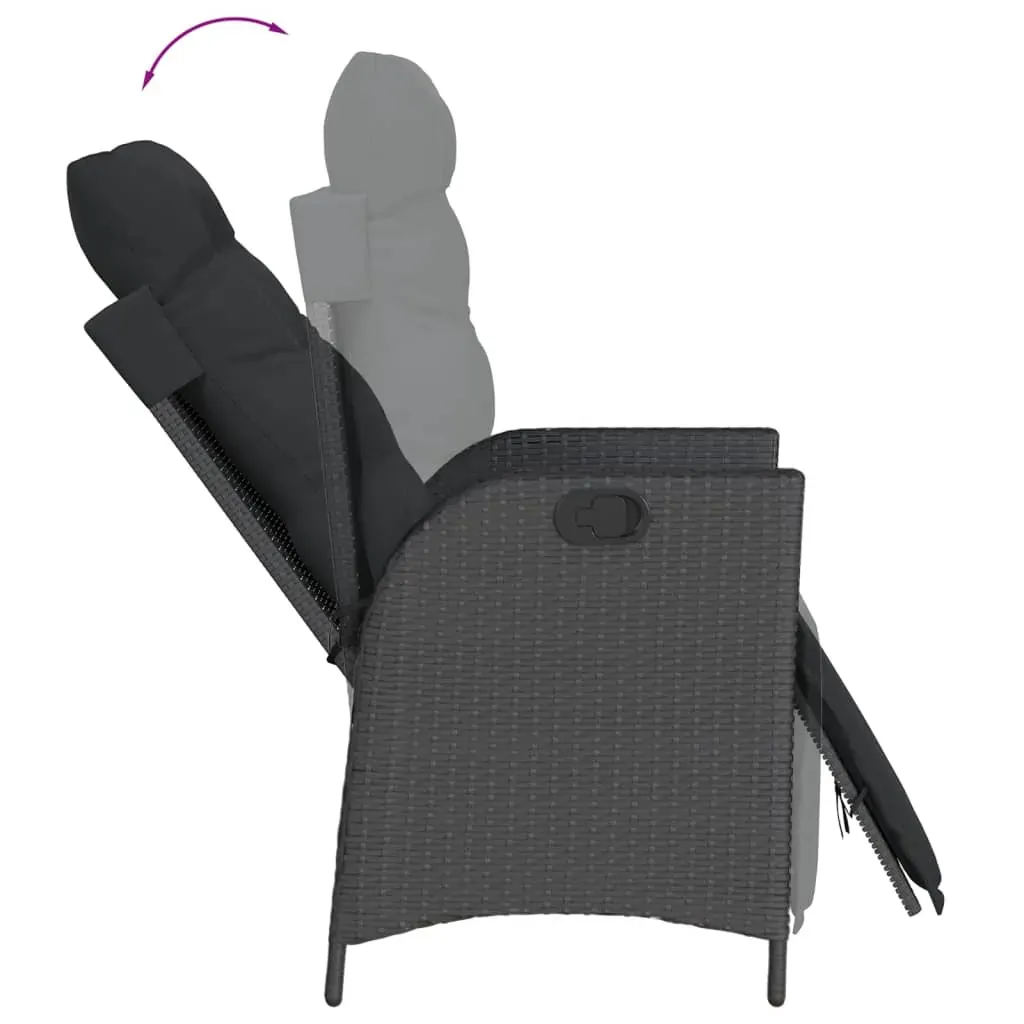 Relax and enjoy the outdoors in this comfortable reclining garden chair! Durable material: PE rattan, also known as poly rattan, is a strong, low-maintenance synthetic material that looks like natural rattan. It's lightweight, easy to clean, and commonly used for outdoor furniture due to its durability and weather-resistant properties.Adjustable backrest and footrest: This garden seat has a handle. You can adjust the backrest and footrest to any position by pulling the handle, and quickly return them to their original positions. Comfortable seat experience: This outdoor furniture, complete with thickly padded cushions, offers a comfortable seating experience.Removable and washable cover: These seat cushions feature removable covers for easy washing and maintenance.Robust and stable frame: The powder-coated steel frame ensures the garden furniture is strong and stable for daily outdoor use. Good to know:To make sure your outdoor furniture stays beautiful, we recommend protecting it with a waterproof cover.