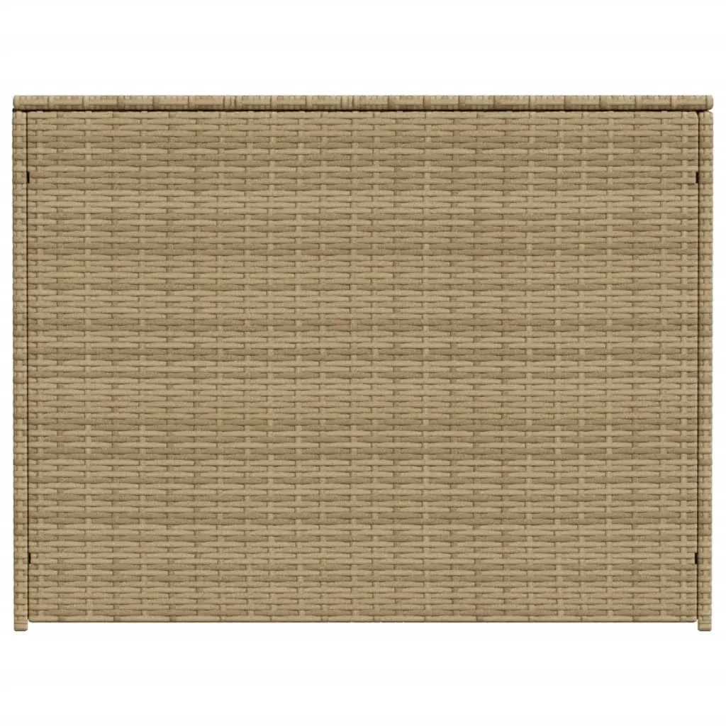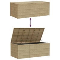 This garden storage box is ideal for storing your cushions, pillows, blankets, and other items in the garden or on the patio. Durable material: PE rattan, also known as poly rattan, is a strong, low-maintenance synthetic material that looks like natural rattan. It's lightweight, easy to clean, and commonly used for outdoor furniture due to its durability and weather-resistant properties.Storage function with water-resistant bag: The garden furniture features a water-resistant bag for storing cushions and other items. The inner bag can be securely fastened to the outdoor furniture with hook-and-loop fasteners for added stability.Safe and easy to open and close: The gas springs make it easy to open the lid and keep it from slamming shut or trapping fingers.Robust and stable frame: The powder-coated steel frame ensures that the garden furniture is strong and stable for daily outdoor use. Good to know:To make sure your outdoor furniture stays beautiful, we recommend protecting it with a waterproof cover.