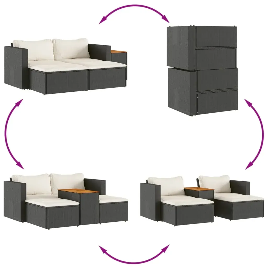 This garden sofa set is the perfect addition to your backyard, terrace, or patio, providing a comfortable and inviting space for chatting with family and friends or simply relaxing and enjoying the outdoors. Durable material: PE rattan, also known as poly rattan, is a strong, low-maintenance synthetic material that looks like natural rattan. It's lightweight, easy to clean, and commonly used for outdoor furniture due to its durability and weather-resistant properties.Comfortable seat experience: This outdoor furniture, complete with thickly padded cushions, offers a comfortable seating experience.Stable and easy-to-clean tabletop: This garden table has an acacia wood top that is sturdy, durable, and easy to clean with a damp cloth.Removable and washable cover: These seat cushions feature removable covers for easy washing and maintenance.Modular design: This outdoor furniture set has a modular design, making it completely flexible and easy to move around, so you can create a customised outdoor furniture arrangement. Good to know:To make sure your outdoor furniture stays beautiful, we recommend protecting it with a waterproof cover.