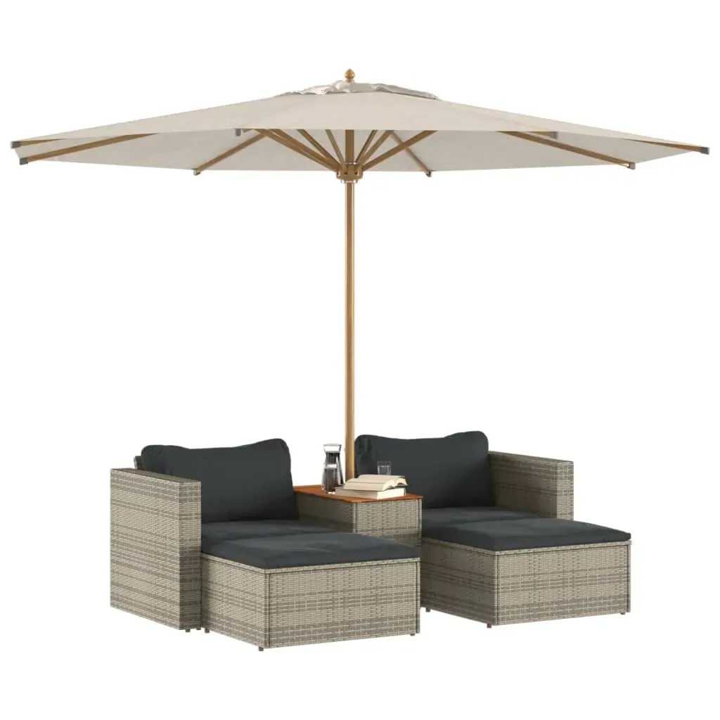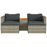 This garden sofa set is the perfect addition to your backyard, terrace, or patio, providing a comfortable and inviting space for chatting with family and friends or simply relaxing and enjoying the outdoors. Durable material: PE rattan, also known as poly rattan, is a strong, low-maintenance synthetic material that looks like natural rattan. It's lightweight, easy to clean, and commonly used for outdoor furniture due to its durability and weather-resistant properties.Comfortable seat experience: This outdoor furniture, complete with thickly padded cushions, offers a comfortable seating experience.Stable and easy-to-clean tabletop: This garden table has an acacia wood top that is sturdy, durable, and easy to clean with a damp cloth.Removable and washable cover: These seat cushions feature removable covers for easy washing and maintenance.Modular design: This outdoor furniture set has a modular design, making it completely flexible and easy to move around, so you can create a customised outdoor furniture arrangement. Good to know:To make sure your outdoor furniture stays beautiful, we recommend protecting it with a waterproof cover.