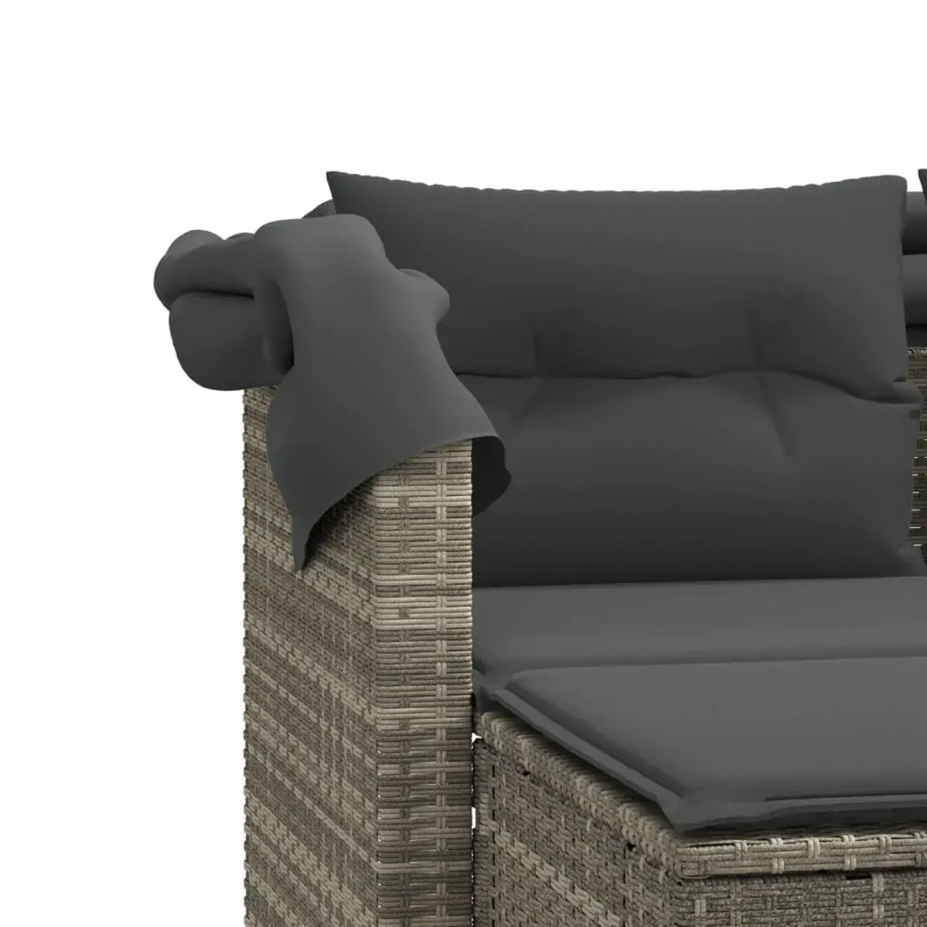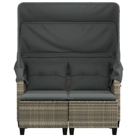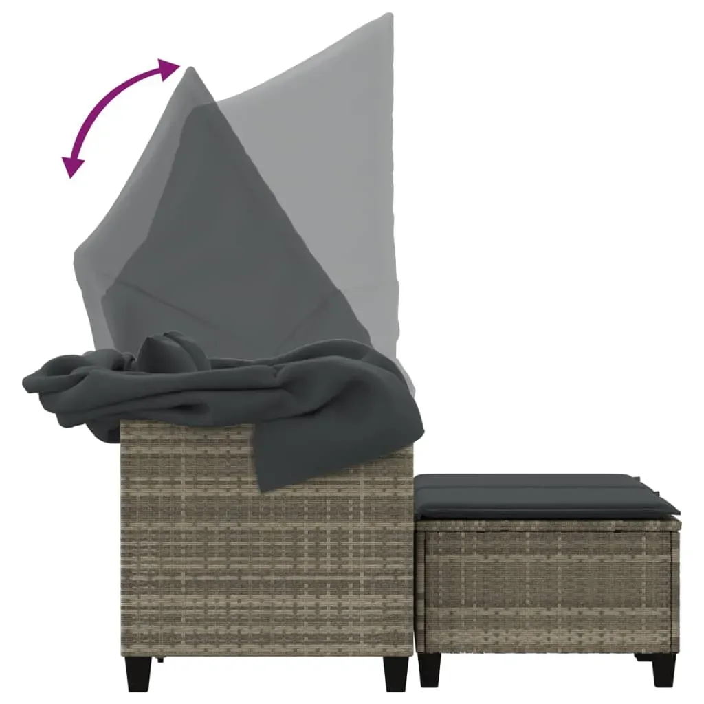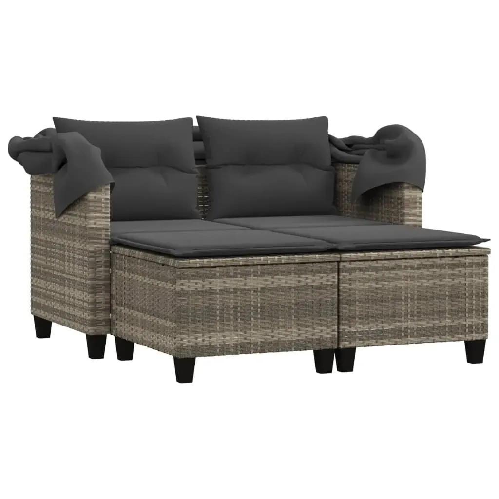 Relax and enjoy the outdoors on this comfortable garden sofa with a canopy and stools! Durable material: PE rattan, also known as poly rattan, is a strong, low-maintenance synthetic material that looks like natural rattan. It's lightweight, easy to clean, and commonly used for outdoor furniture due to its durability and weather-resistant properties.Retractable canopy: Thanks to the retractable canopy, you can create a cool, pleasant outdoor environment throughout the day.Versatile footstool: The stool is versatile, serving as a comfortable footrest for when you're lounging on the sofa or as an extra seat in your garden.Comfortable seat experience: This outdoor sofa, complete with thickly padded cushions, offers a comfortable seating experience.Removable and washable cover: The seat cushion features a removable cover for easy washing and maintenance. Good to know:To make sure your outdoor furniture stays beautiful, we recommend protecting it with a waterproof cover.