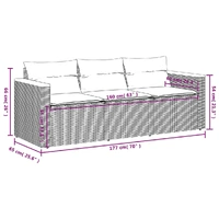 Relax and enjoy the outdoors in this comfortable 3-seater garden sofa! Durable material: PE rattan, also known as poly rattan, is a strong, low-maintenance synthetic material that looks like natural rattan. It's lightweight, easy to clean, and commonly used for outdoor furniture due to its durability and weather-resistant properties.Comfortable seat experience: This outdoor furniture, complete with thickly padded cushions, offers a comfortable seating experience.Removable and washable cover: These seat cushions feature removable covers for easy washing and maintenance.Robust and stable frame: The powder-coated steel frame ensures the garden furniture is strong and stable for daily outdoor use. Good to know:To make sure your outdoor furniture stays beautiful, we recommend protecting it with a waterproof cover.