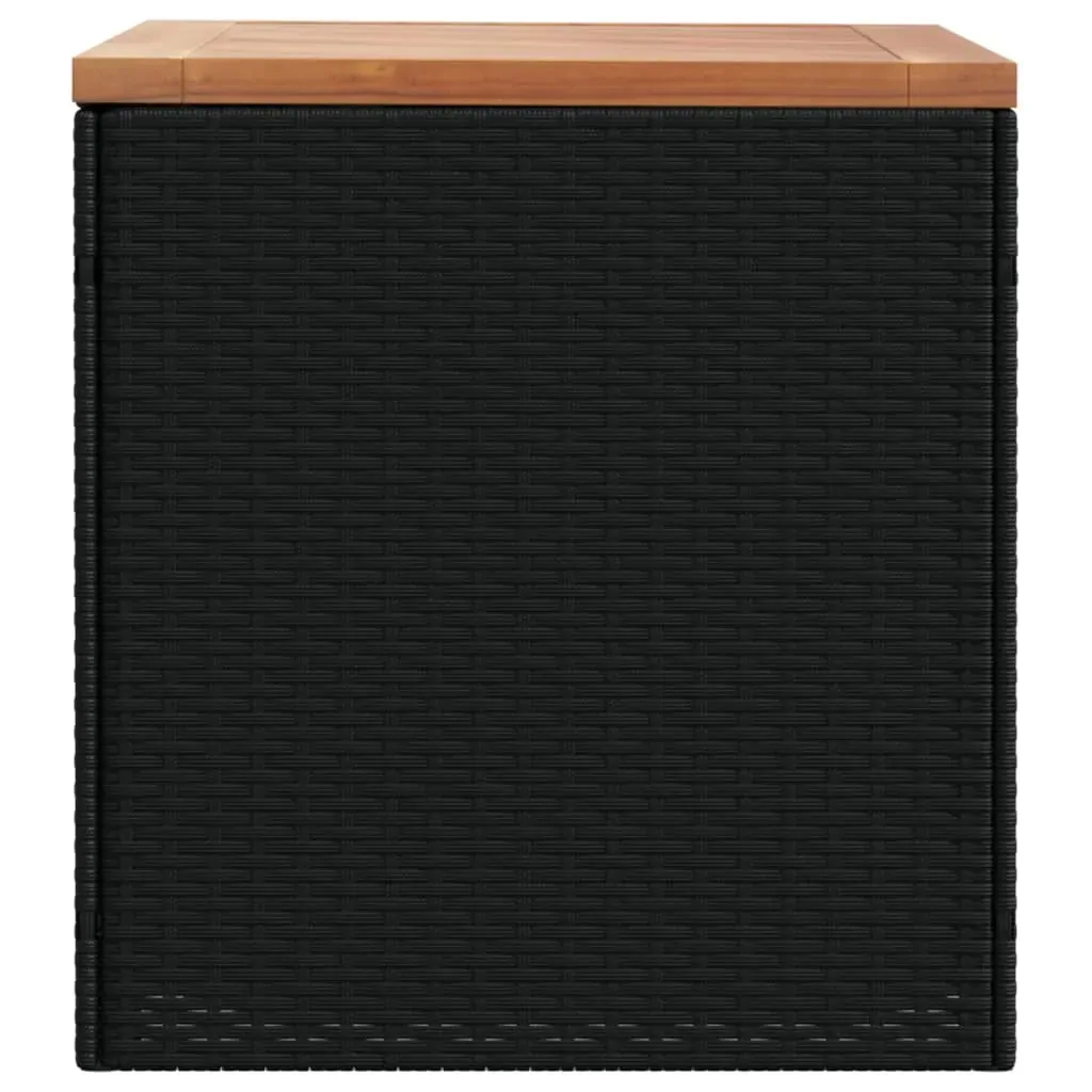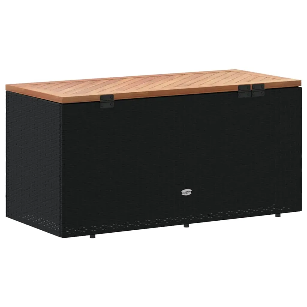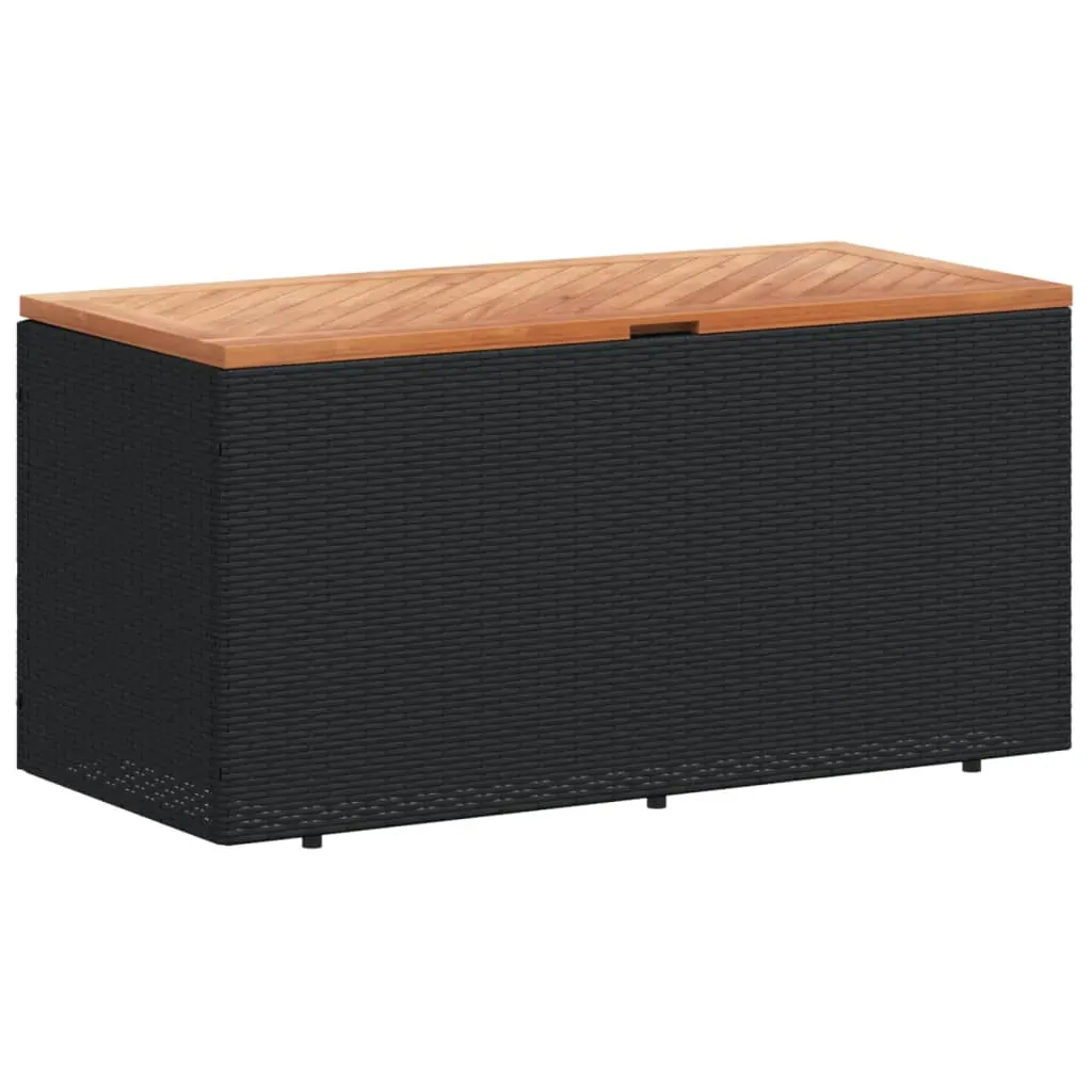 This garden storage box is ideal for storing your cushions, pillows, blankets, toys, and other items in the garden or on the patio. Durable material: PE rattan, also known as poly rattan, is a strong, low-maintenance synthetic material that looks like natural rattan. It's lightweight, easy to clean, and commonly used for outdoor furniture due to its durability and weather-resistant properties.Storage function with water-resistant bag: The garden furniture features storage space under the seat, complete with a water-resistant bag for storing cushions, toys, and other items. The inner bag can be securely fastened to the outdoor furniture with hook-and-loop fasteners for added stability.Versatile functionality: This outdoor furniture serves a dual purpose as a garden storage box and a bench seat.Safe and easy to open and close: The gas spring makes it easy to open the lid and keeps it from slamming shut or trapping fingers.Stable and easy-to-clean tabletop: This patio furniture has an acacia wood top that is sturdy, durable, and easy to clean with a damp cloth. Good to know:To make sure your outdoor furniture stays beautiful, we recommend protecting it with a waterproof cover.