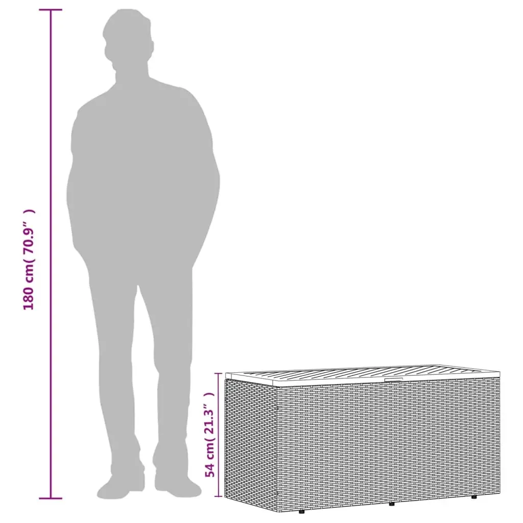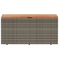This garden storage box is ideal for storing your cushions, pillows, blankets, toys, and other items in the garden or on the patio. Durable material: PE rattan, also known as poly rattan, is a strong, low-maintenance synthetic material that looks like natural rattan. It's lightweight, easy to clean, and commonly used for outdoor furniture due to its durability and weather-resistant properties.Storage function with water-resistant bag: The garden furniture features storage space under the seat, complete with a water-resistant bag for storing cushions, toys, and other items. The inner bag can be securely fastened to the outdoor furniture with hook-and-loop fasteners for added stability.Versatile functionality: This outdoor furniture serves a dual purpose as a garden storage box and a bench seat.Safe and easy to open and close: The gas spring makes it easy to open the lid and keeps it from slamming shut or trapping fingers.Stable and easy-to-clean tabletop: This patio furniture has an acacia wood top that is sturdy, durable, and easy to clean with a damp cloth. Good to know:To make sure your outdoor furniture stays beautiful, we recommend protecting it with a waterproof cover.