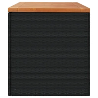 This garden storage box is ideal for storing your cushions, pillows, blankets, toys, and other items in the garden or on the patio. Durable material: PE rattan, also known as poly rattan, is a strong, low-maintenance synthetic material that looks like natural rattan. It's lightweight, easy to clean, and commonly used for outdoor furniture due to its durability and weather-resistant properties.Storage function with water-resistant bag: The garden furniture features storage space under the seat, complete with a water-resistant bag for storing cushions, toys, and other items. The inner bag can be securely fastened to the outdoor furniture with hook-and-loop fasteners for added stability.Versatile functionality: This outdoor furniture serves a dual purpose as a garden storage box and a bench seat.Safe and easy to open and close: The gas spring makes it easy to open the lid and keeps it from slamming shut or trapping fingers.Stable and easy-to-clean tabletop: This patio furniture has an acacia wood top that is sturdy, durable, and easy to clean with a damp cloth. Good to know:To make sure your outdoor furniture stays beautiful, we recommend protecting it with a waterproof cover.
