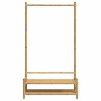 Clean up your closet and easily pick out your outfit with this clothes rack! Durable and long-lasting: As a natural material, bamboo boasts good breathability and a low odour. These qualities make the clothes rack durable, water-resistant, and long-lasting.Ample storage space: The coat rack with shelves has plenty of room for organising your clothes and bags. The upper shelf is great for boxes and folded clothes, while the lower shelf is perfect for shoes.Stylish and compact design: The clean lines and minimalist design make the free standing coat rack blend into your room perfectly. The clothes stand is also perfect for small rooms due to its compact size. Warning:To prevent it from tipping over, this product must be used with the provided wall attachment device.