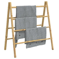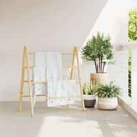 This double bamboo towel ladder with 4 rungs on both sides presents a clever and stylish storage solution in the bathroom, living room, bedroom, hallway, etc. Durable and long-lasting: As a natural material, bamboo boasts good breathability and a low odour. These qualities make the towel rack durable, water-resistant, and long-lasting.Ample storage space: The towel stand with 4 rungs makes it easy to keep things organised.Easy to clean: The surface is easy to clean with a damp cloth.Multifunctional storage ladder: The towel holder can be flexibly placed anywhere. It can also serve as a coat rack, laundry dryer, etc. Good to know:The product can not be used as a real ladder.