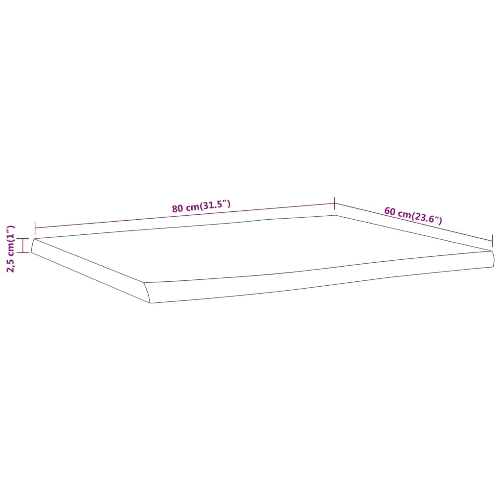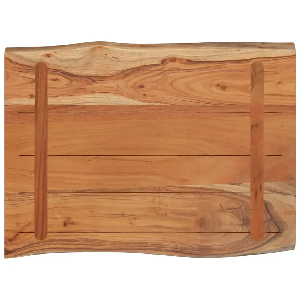 Give a new life to your table with this wooden table top. It is an excellent solution for freshening up your table at home or in a commercial setting. Solid acacia wood: Solid acacia wood is a beautiful natural material. Acacia wood is a tropical hardwood, which is dense, sturdy, and durable.Versatile applications: The wooden table top can be used for a bar table, side table, or even something of your own creation. You can combine this replacement table top with any styled legs.Live edge design: The wooden furniture top has a rustic live edge. Due to that the knots, cracks, slightly curved shapes, and colour tones are part of it, and every piece has its unique character to display.Easy-to-clean surface: The smooth tabletop is easy to clean with a damp cloth. Good to know:Each item is unique with variations in colours and grains. The delivery is random, ensuring the exclusivity and individuality of your product.