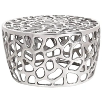 Add a modern touch to your home decor with this coffee table! Long-lasting and stable material: The couch table is made of aluminium. Aluminium is a durable, lightweight, and low-maintenance material that is resistant to corrosion and fading.Sturdy tabletop: The sturdy tabletop of the sofa table is perfect for placing your drinks, food and other decorative items.Attractive design: The attractive hollow design of the living room table will add a charming charm to your interior.