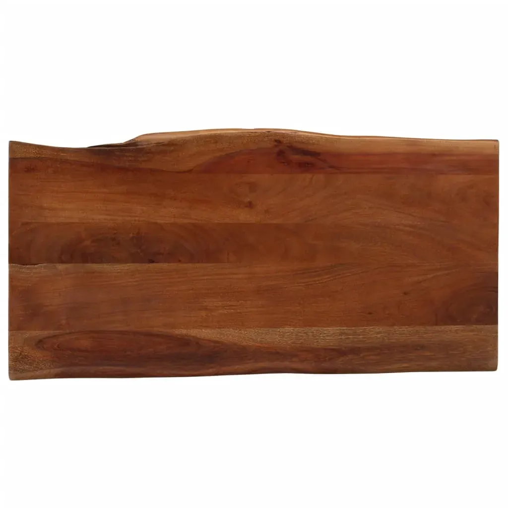 Add a touch of elegance to your living room with this stylish coffee table. Solid acacia wood: Solid acacia wood is a beautiful natural material. Acacia wood is a tropical hardwood, which is dense, sturdy, and durable.Live edge: The wood's live edge that follows the natural shape of the tree increases the beauty of the centre table.Sturdy tabletop: The sturdy tabletop of the living room table is perfect for placing your drinks, food and other decorative items.Sturdy legs: The powder-coated iron legs add to the couch table's sturdiness and stability. Good to know:Each item is unique with variations in colours and grains. The delivery is random, ensuring the exclusivity and individuality of your product.
