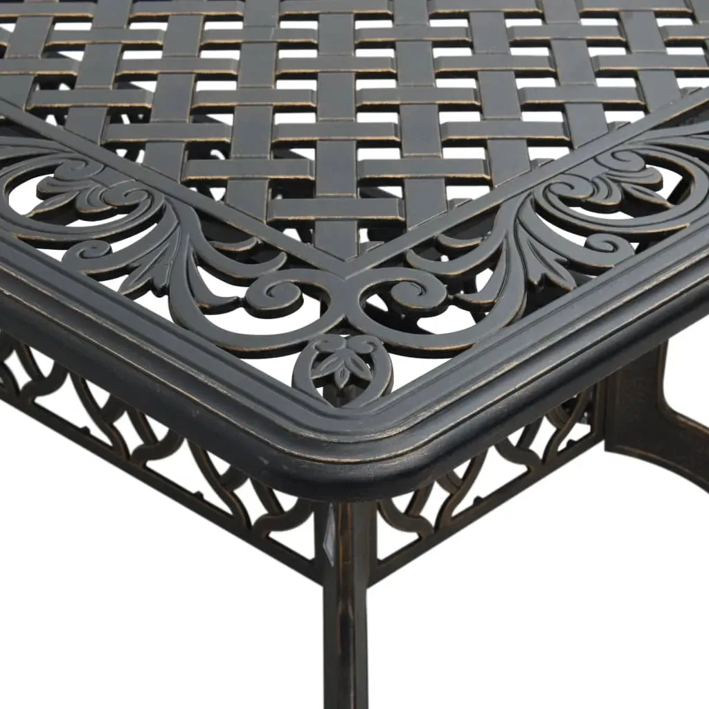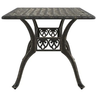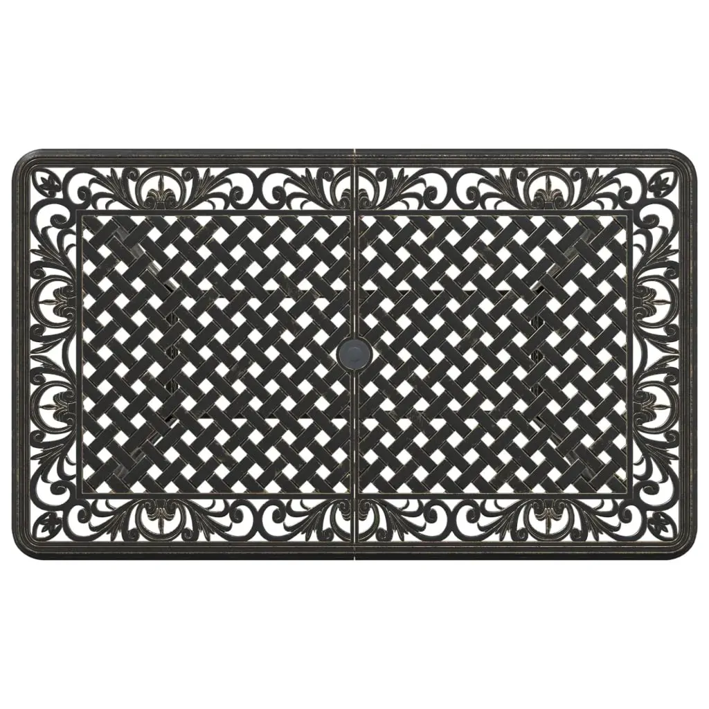 This garden table featuring a stylish look is a striking addition to your current outdoor and indoor living space. Durable material: This garden table is made of cast aluminium which is a durable, lightweight, and low-maintenance material that is resistant to corrosion and fading.Practical design: This patio table has an umbrella hole that can perfectly accommodate your umbrella to protect you from sun or rain.Wide applications: The tabletop features beautiful patterns and is suitable for placing drinks, food and other essentials. The four separate legs bring you a reliable user experience for its stability
