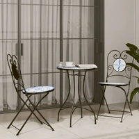 These bistro chairs, with a mosaic design, will become the focal point of your garden, balcony, or patio. Stable and easy-to-clean tabletop: These garden chairs have a ceramic top that is sturdy, durable, and easy to clean with a damp cloth.Robust and stable frame: The powder-coated iron frame ensures that the folding chairs are strong and stable for daily indoor or outdoor use.Foldable design: The bistro dining chair can also be folded to save space when not in use.Mosaic design: The outdoor chairs help create a Mediterranean atmosphere in your indoor or outdoor settings with the mosaic design. Good to know:To make sure your outdoor furniture stays beautiful, we recommend protecting it with a waterproof cover.