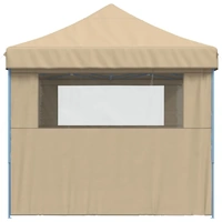 This foldable pop-up party tent with sidewalls is ideal for a wide range of outdoor events, such as shows, weddings, parties, BBQs, festivals and so on. Long-lasting material: The roof covering is made of oxford fabric with a PVC coating, making it the perfect choice for humid or rainy conditions and is also easy to clean.Pop-up and foldable design: Thanks to the pop-up design, you can easily set up and fold the tent in seconds. And the gazebo tent is foldable for easy storage and transport.Practical design: The marquee has 3 sidewalls with clear windows, offering a combination of open and closed designs to fit a crowd of guests without making them feel crowded.Stable frame: The powder-coated steel frame of the garden tent ensures sturdiness and stability. Good to know:This product is not suitable to use in bad weather conditions such as strong wind, heavy rain, snow, storm, etc.