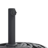 This parasol base offers a sturdy and reliable foundation to ensure your umbrella remains stable and upright. Strong and stable base: This parasol base features a durable plastic shell filled with concrete, ensuring exceptional stability to keep your parasol securely in place and prevent it from tipping over, even in windy conditions.Easy to install: This umbrella base has a tightening knob for securing your umbrella to the base more firmly.Compatible with multiple pole sizes: This umbrella base comes with 2 pole adaptors, allowing it to fit umbrella poles with a diameter of 38 and 48 mm.Beautiful floral pattern: Designed with floral patterns, this parasol holder brings a touch of timeless elegance to your outdoor area.