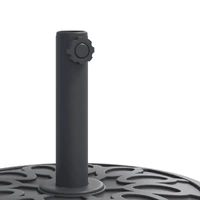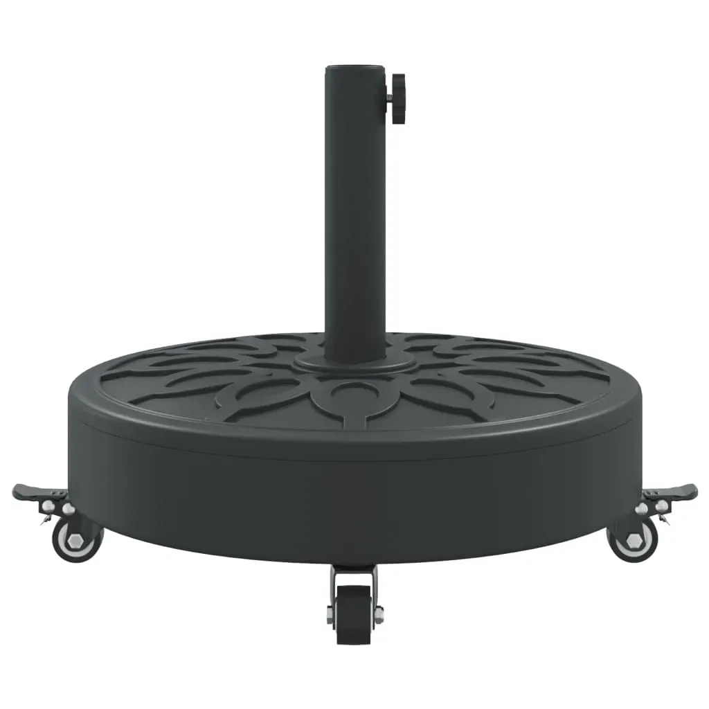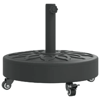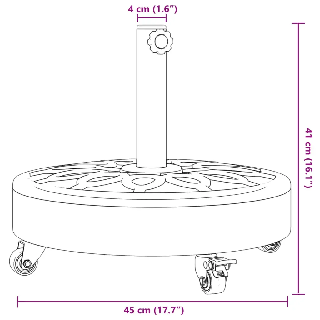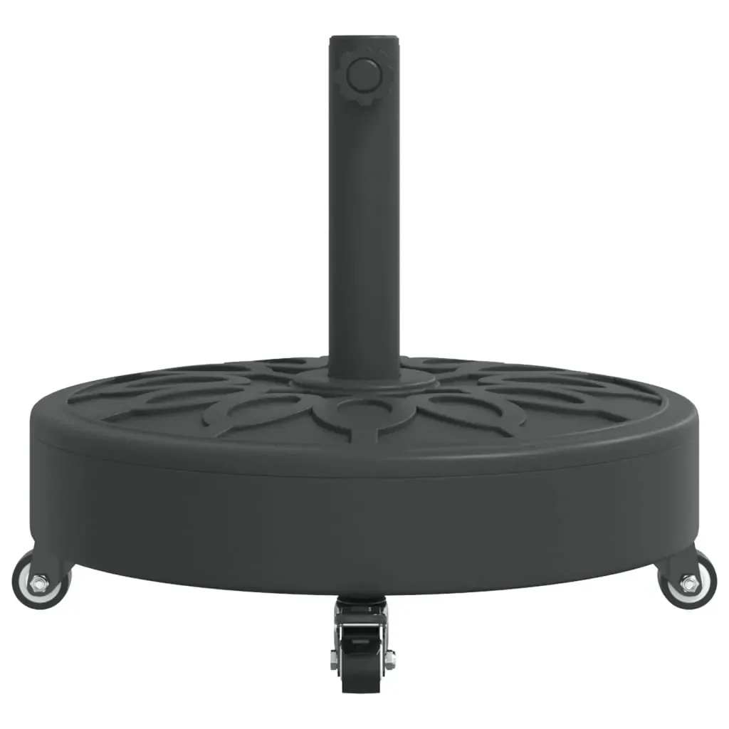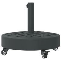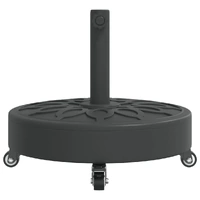 This parasol base offers a sturdy and reliable foundation to ensure your umbrella remains stable and upright. Strong and stable base: This parasol base features a durable plastic shell filled with concrete, ensuring exceptional stability to keep your parasol securely in place and prevent it from tipping over, even in windy conditions.Easy movement: Equipped with lockable castors, this parasol base allows you to effortlessly relocate your parasol to any desired spot and securely lock it in place for added control and safety.Easy to install: This umbrella base has a tightening knob for securing your umbrella to the base more firmly.Compatible with multiple pole sizes: This umbrella base comes with 2 pole adaptors, allowing it to fit umbrella poles with a diameter of 38 and 48 mm.Beautiful circle pattern: Designed with circle patterns, this parasol holder brings a touch of timeless elegance to your outdoor area.