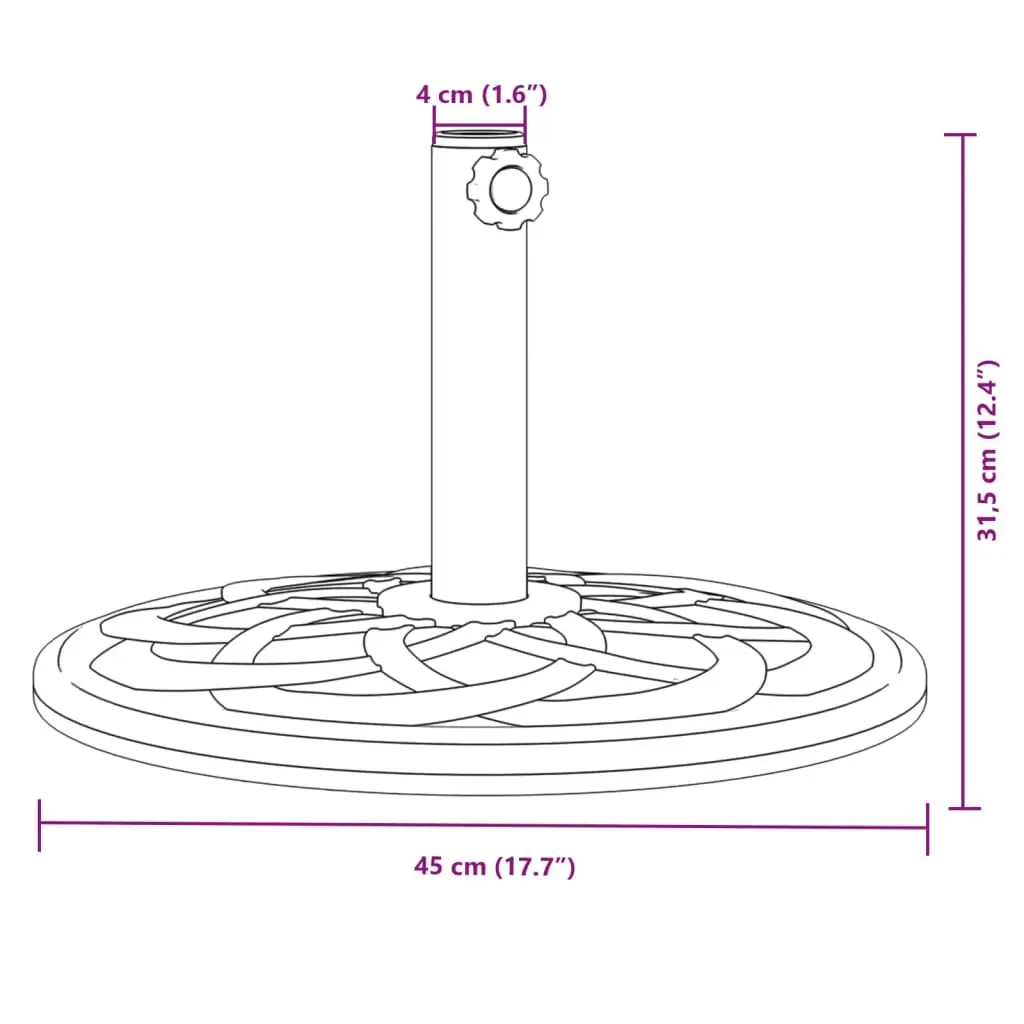This parasol base offers a sturdy and reliable foundation to ensure your umbrella remains stable and upright. Strong and stable base: This parasol base features a durable plastic shell filled with concrete, ensuring exceptional stability to keep your parasol securely in place and prevent it from tipping over, even in windy conditions.Easy to install: This umbrella base has a tightening knob for securing your umbrella to the base more firmly.Compatible with multiple pole sizes: This umbrella base comes with 2 pole adaptors, allowing it to fit umbrella poles with a diameter of 38 and 48 mm.Beautiful curve pattern: Designed with curve patterns, this parasol holder brings a touch of timeless elegance to your outdoor area.