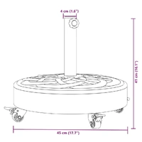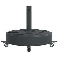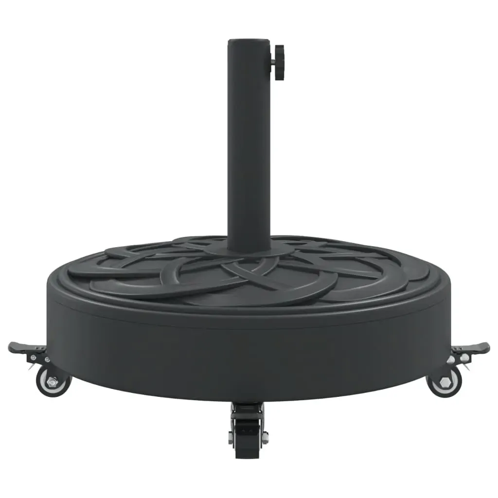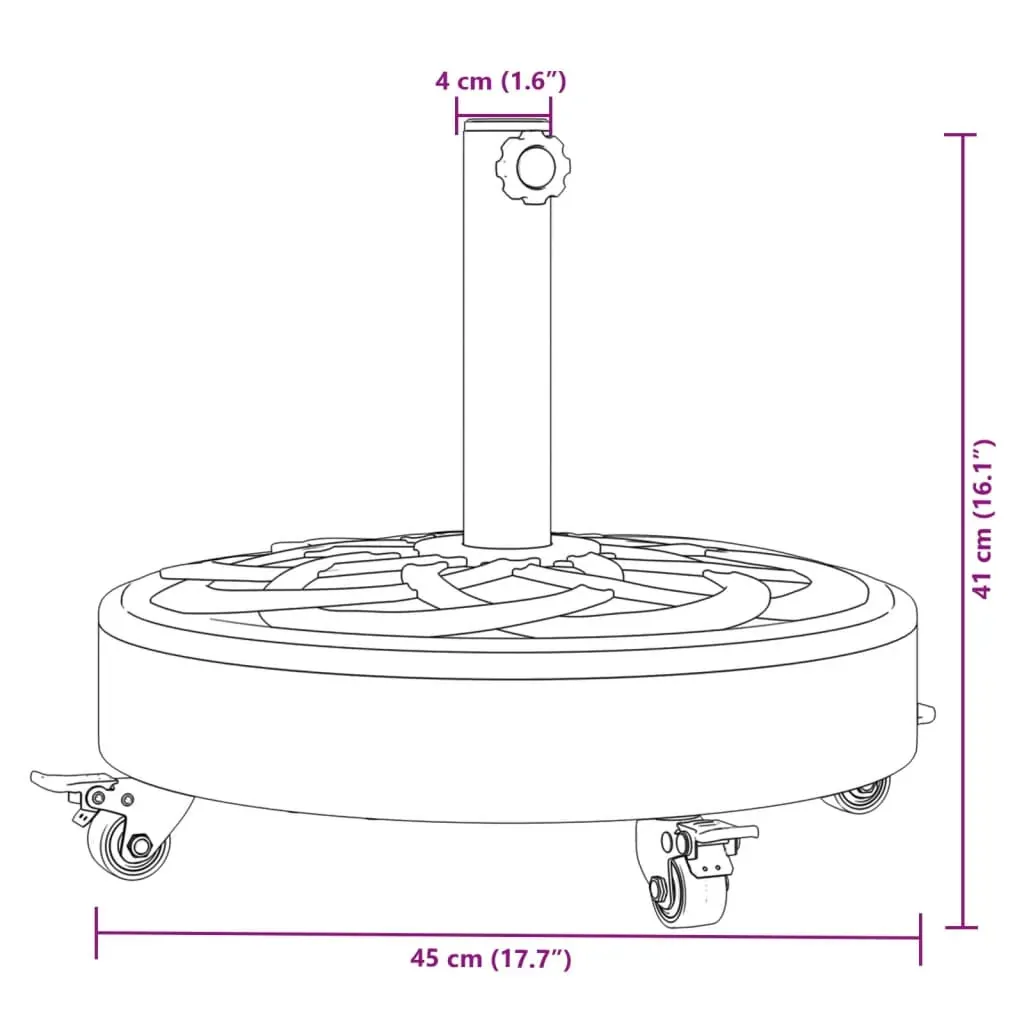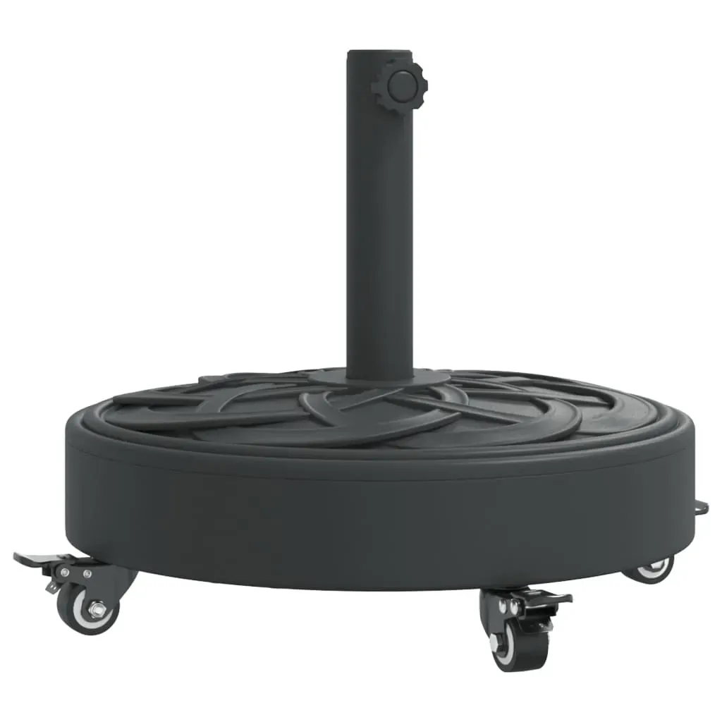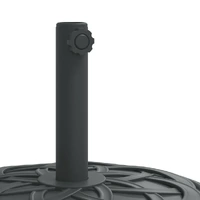 This parasol base offers a sturdy and reliable foundation to ensure your umbrella remains stable and upright. Strong and stable base: This parasol base features a durable plastic shell filled with concrete, ensuring exceptional stability to keep your parasol securely in place and prevent it from tipping over, even in windy conditions.Easy movement: Equipped with lockable castors, this parasol base allows you to effortlessly relocate your parasol to any desired spot and securely lock it in place for added control and safety.Easy to install: This umbrella base has a tightening knob for securing your umbrella to the base more firmly.Compatible with multiple pole sizes: This umbrella base comes with 2 pole adaptors, allowing it to fit umbrella poles with a diameter of 38 and 48 mm.Beautiful curve pattern: Designed with curve patterns, this parasol holder brings a touch of timeless elegance to your outdoor area.