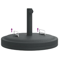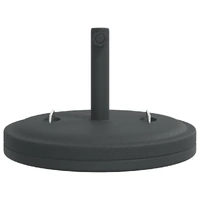 This parasol base offers a sturdy and reliable foundation to ensure your umbrella remains stable and upright. Strong and stable base: This parasol base features a durable plastic shell filled with concrete, ensuring exceptional stability to keep your parasol securely in place and prevent it from tipping over, even in windy conditions.Easy movement: This parasol base comes with handles for easy carrying, making it convenient to move to any spot you want.Easy to install: This umbrella base has a tightening knob for securing your umbrella to the base more firmly.Compatible with multiple pole sizes: This umbrella base comes with 2 pole adaptors, allowing it to fit umbrella poles with a diameter of 38 and 48 mm.
