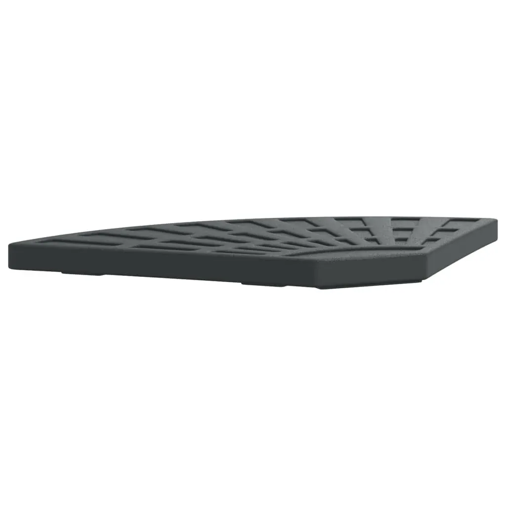 This parasol base weight offers a sturdy and reliable foundation to ensure your umbrella remains stable and upright. Strong and stable base: This parasol base weight features a durable polyethene (PE) shell filled with concrete, ensuring exceptional stability to keep your parasol securely in place and prevent it from tipping over, even in windy conditions.Easy movement: This parasol base comes with a handle for easy carrying, making it convenient to move to any spot you want.Simple to set up: This umbrella base weight effortlessly slots into a cross stand featured on cantilever parasols.Beautiful design: This parasol base weight has a textured fan design that blends well with your garden furniture. Good to know:The quarter is just 1 piece in a set of 4. You will need to order 4 quarters to make up a complete base.