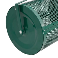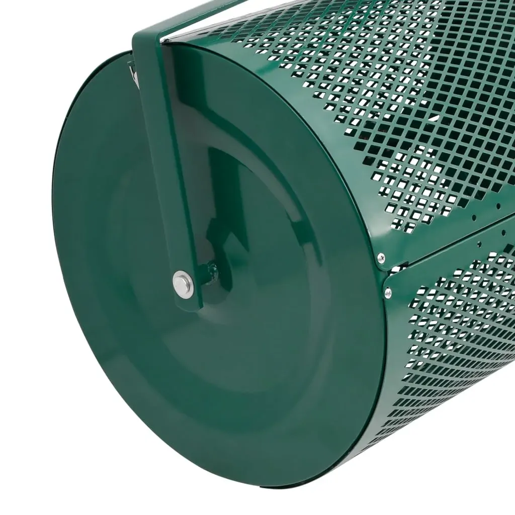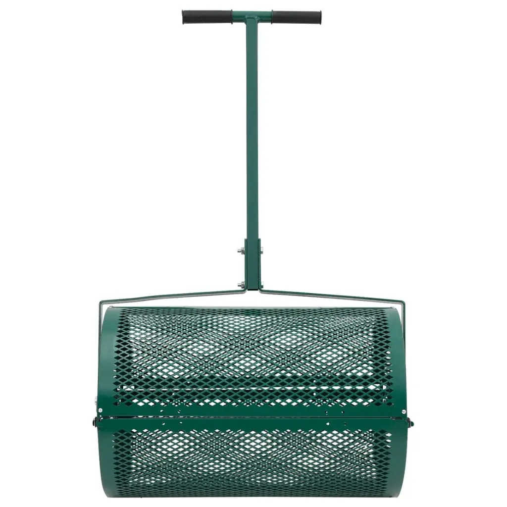 Achieving the lawn of your dreams is now easier and quicker than ever with this compost spreader. Even distribution: The roller of the fertilizer spreader is designed with diamond-shaped open slits to evenly distribute compost, manure, soil, peat moss, sand, mulch, and other compost materials.Lightweight and stable: The garden spreader is made of steel. Steel is impressed by its strength, durability, and resistance to corrosion. Lightweight material and a comfortable grip handle with a long clip-in pole handle make lawn care even more enjoyable.Easy to use: Install the handle, add compost, lock the latches, and roll it on your lawn. The top dressing spreader can be used on different terrains, such as slopes and uneven surfaces. With T-handle, it's convenient to push and pull.Side latches design: The locking clasps on the side of the topsoil spreader secure the load, ensuring the basket stays closed during turning and tumbling operations. It prevents the peat moss spreader from accidentally opening and spilling the compost.Efficient use: After the spreading is complete, the latch can be opened, and any remaining material can be removed from the bin before refilling. That means no compost material is wasted and makes the lawn manure spreader more cost-effective in the long run.