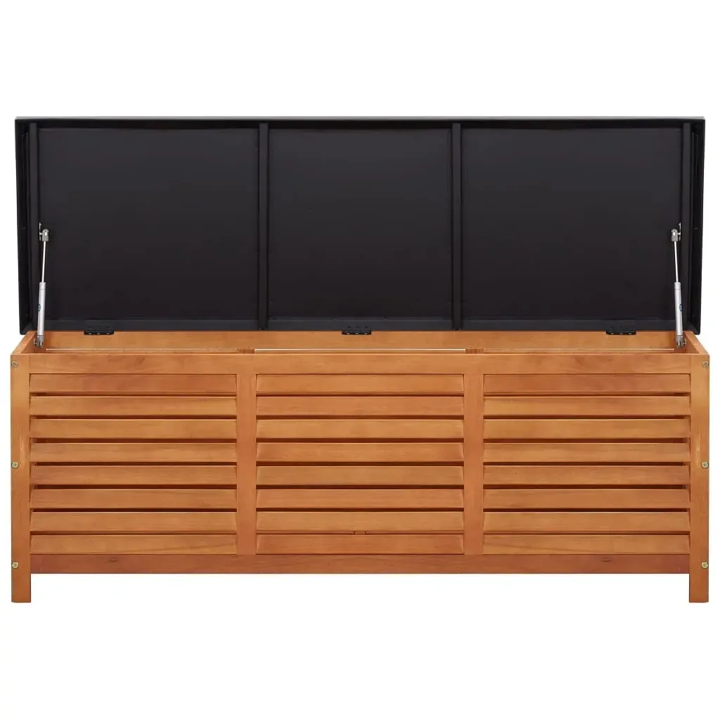 This clever piece provides ample open storage for toys, chair cushions and equipment for a pool, tools for the barbeque or fire pit, or linens for a dining table. It acts as both a seating bench and a storage container. Metal top with black powder coating and solid eucalyptus wood with natural oil finish help to protect your items from moisture damage. This storage box is easy to clean and maintain, hard-wearing and sustainable for daily use. The storage box is easy to assemble.