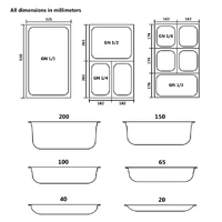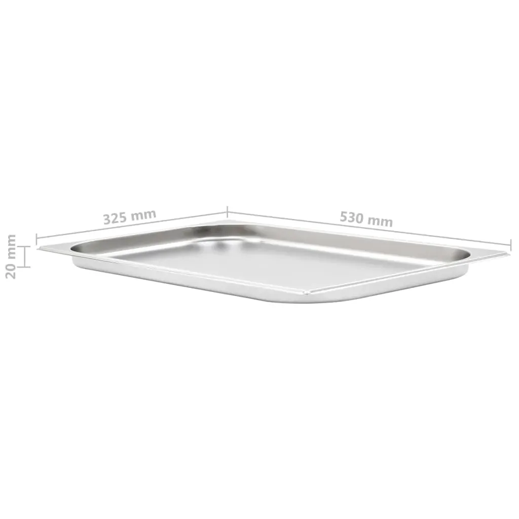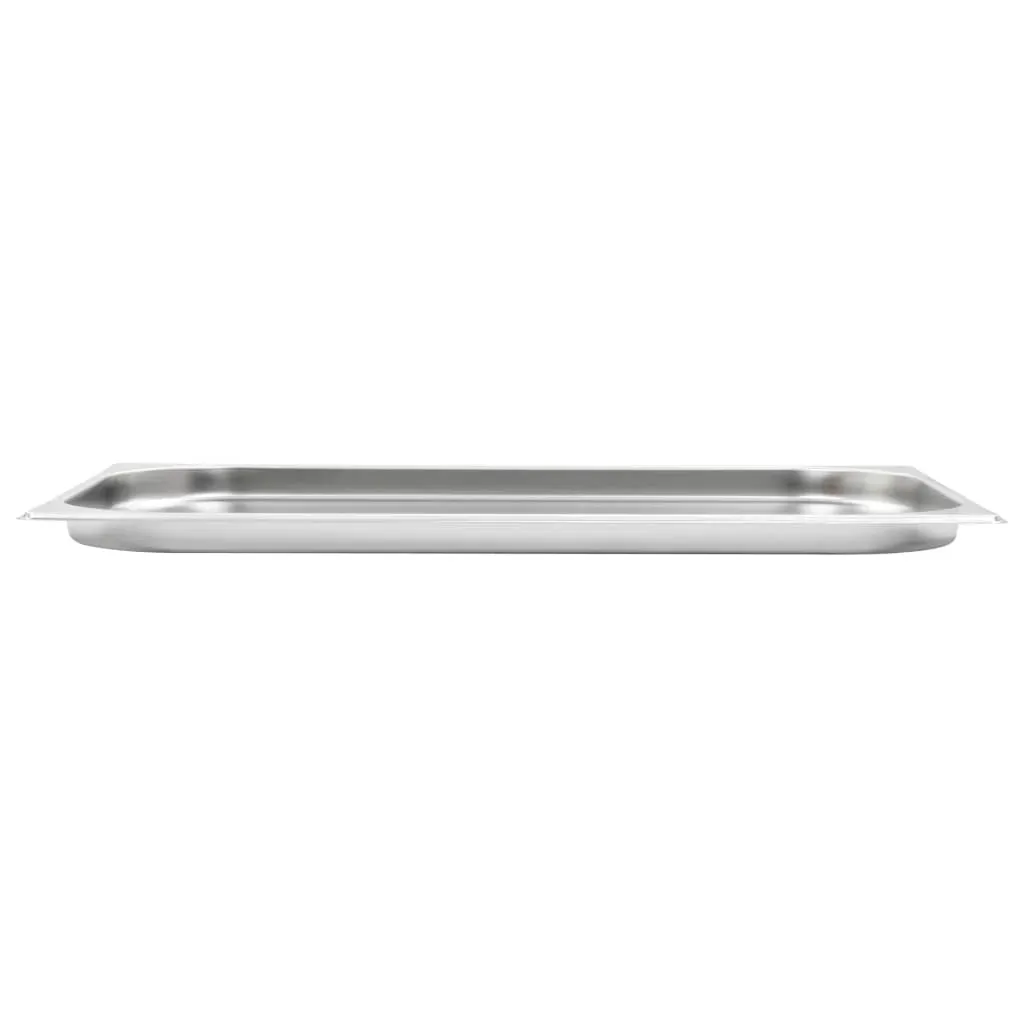 These stackable Gastronorm containers will be great additions to your kitchenware. Made of strong stainless steel, the steam table pan has a solid construction and is easy to clean. The hardwearing material makes it scratch-free and easy to maintain. The food pan features the standard Gastronorm dimensions, thus allowing universal use and a wide range of combinations. Consequently, it fits perfectly in all your professional kitchen cabinets and equipment like bain-marie, chafing dishes and salad bars. The cookware is stackable and can be hidden away to save space, therefore it is very practical and ideal for using in restaurants, hotels, parties, as well as at home. Delivery includes 4 pans.