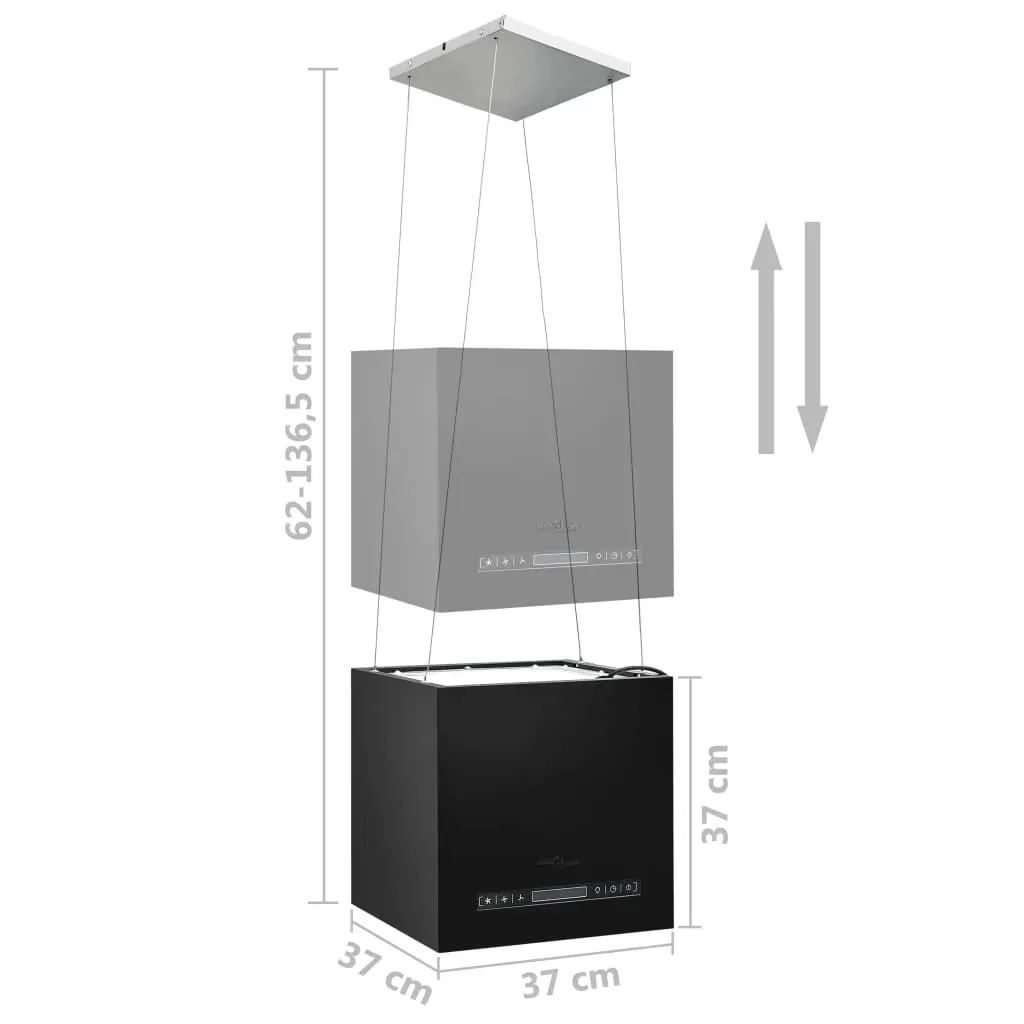 Our low-noise and powerful free-hanging island range hood is ideal for effectively extracting smoke, grease, moisture and even heat from your kitchen. Its sleek powder-coated steel housing will give your kitchen a stylish and modern look. This island range hood is equipped with a 3-layer washable aluminium grease filter to protect the inside of the extractor hood from grease. The built-in LED lights provide illumination to help with cooking and also to create a nice ambience in your kitchen. The 3-speed extractor hood has a touch-sensitive LCD with sensor buttons to ensure you have a full control over the extraction rate. In addition, the charcoal filter will help purify the air and release the cleaned air back into the kitchen. This island range hood is ceiling mounted with a stainless steel plate. The steel hanging wire ropes can be adjusted to raise or lower the range hood.
