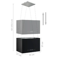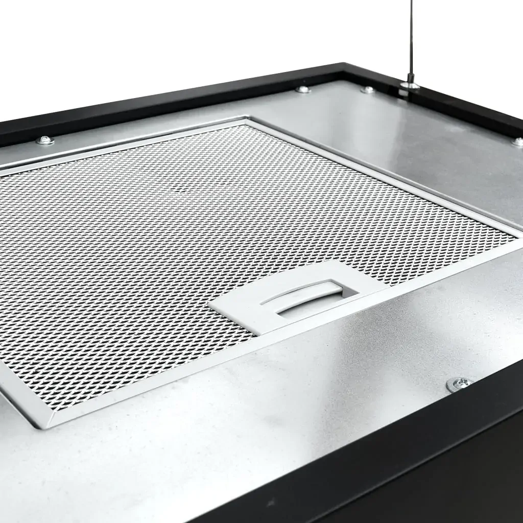 Our low-noise and powerful free-hanging island range hood is ideal for effectively extracting smoke, grease, moisture and even heat from your kitchen. Its sleek powder-coated steel housing will give your kitchen a stylish and modern look. This island range hood is equipped with a 3-layer washable aluminium grease filter to protect the inside of the extractor hood from grease. The built-in LED lights provide illumination to help with cooking and also to create a nice ambience in your kitchen. The 3-speed extractor hood has a touch-sensitive LCD with sensor buttons to ensure you have a full control over the extraction rate. In addition, the charcoal filter will help purify the air and release the cleaned air back into the kitchen. This island range hood is ceiling mounted with a stainless steel plate. The steel hanging wire ropes can be adjusted to raise or lower the range hood.