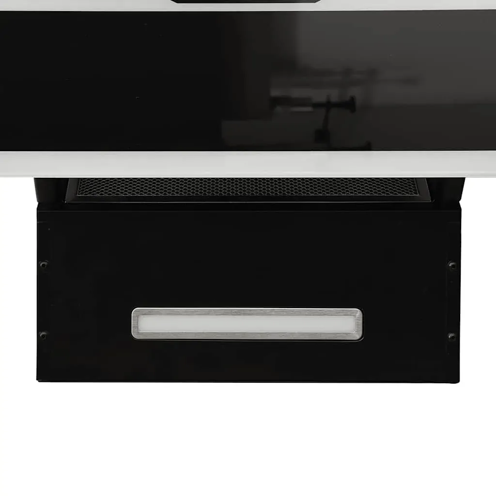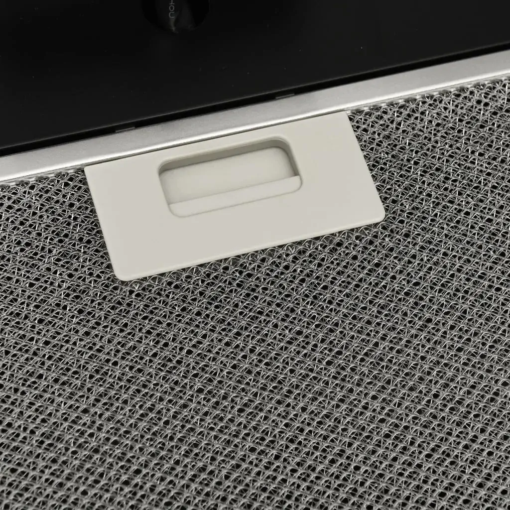 This ultra-quiet, powerful range hood effectively extracts fumes and smoke, grease, moisture and even heat from your kitchen. This range hood has a powerful 297 m³/h extractor. The washable aluminium grease filter is also included to protect the inside of the extractor hood and the exhaust duct from grease. A built-in LED lamp effectively illuminates the cooking surface. Thus, you can save on energy. The device can be operated conveniently using buttons. It has 3 different speeds for you to choose from. With the sloping shape of the hood, you can look almost vertically at your cooking dishes without bumping your head. The width of 60 cm saves space and is suitable for small kitchens. Thanks to the tempered glass and chimney, this wall mount cooker hood is highly durable and easy to clean.