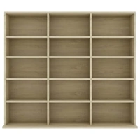 This CD cabinet is a practical and decorative addition to your living space. It is stylish yet practical, and perfect for keeping your music collection organised. The 15 open compartments not only offer plenty of storage space to hold records but also are ideal for holding any accessories for your collection. The storage cabinet is made of a strong engineered wood, making it exceedingly sturdy and durable. Additionally, it can serve as a filing cabinet for the office or study, or as a bedroom cabinet. The bookshelf is easy to clean and assemble. A great storage solution for keeping your home organised, this CD shelf is just what you need!